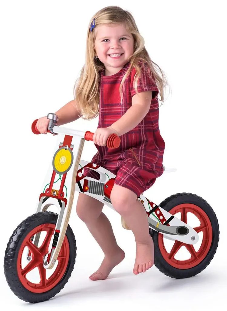 Odrážedlo Woody z dřevěného materiálu v designu motorky v červeném barevném provedení je vynikající pro přípravu na první jízdu na kole. Odrážedlo má lehkou dřevěnou konstrukci. Systém dorazů řídítek brání nehodám při jejich přetočení.