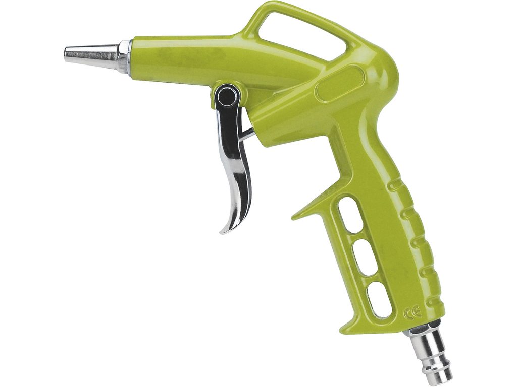Ofukovací pistole je určena k rychlému čištění velkých ploch. Dlouhý nástavec umožňuje také přístup do těžko přístupných míst.