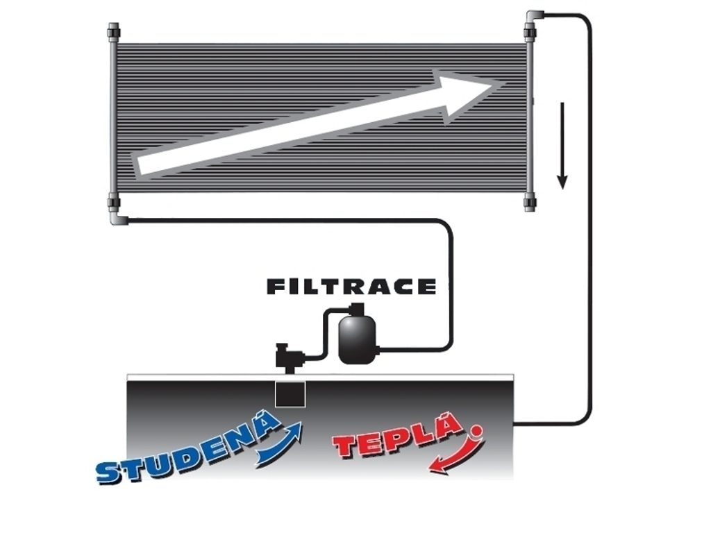 Solární panel Slim 360 pohlcuje tepelnou energii slunečních paprsků a předává ji vodě, která panelem proudí. Chladná voda z bazénu je pomocí bazénové filtrace vháněna do solárního panelu, kde se ohřívá a vrací se zpět do bazénu. Solární panel Slim napojíte na hadice o průměru 32 i 38 mm. Součástí balení solárního panelu Slim 360 jsou i spony a hadicové trny k napojení na hadice. Solární panel není určen k montáži na střechy, pergoly apod. Solární ohřev musí být vedle bazénu umístěn tak, aby byl na stejné úrovni hladiny vody, nebo pod její úrovní.