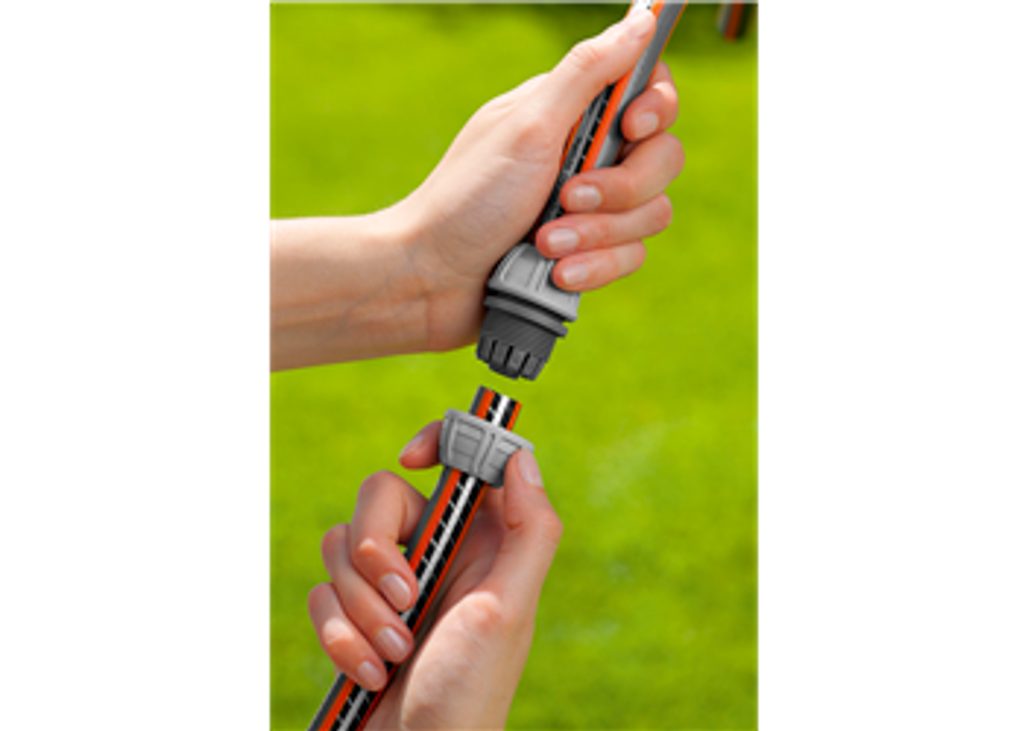 POWER GRIP - speciálně tvarované pouzdro s rýhováním pro dobrou přídržnost a bezproblémovou montáž.Díky systémovým výrobkům z řady Original GARDENA System lze velmi snadno a rychle připojit k hadici jakékoliv zavlažovací příslušenství. Všechno se k sobě dokonale hodí od začátku až do konce a skvěle drží.