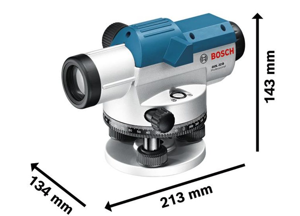 Optický nivelační přístroj Bosch GOL 32 D robustní a odolný přístroj, který je ideální pro použití ve venkovním prostředí a nabízí vynikající parametry pro profesionální geodetické a stavební práce.