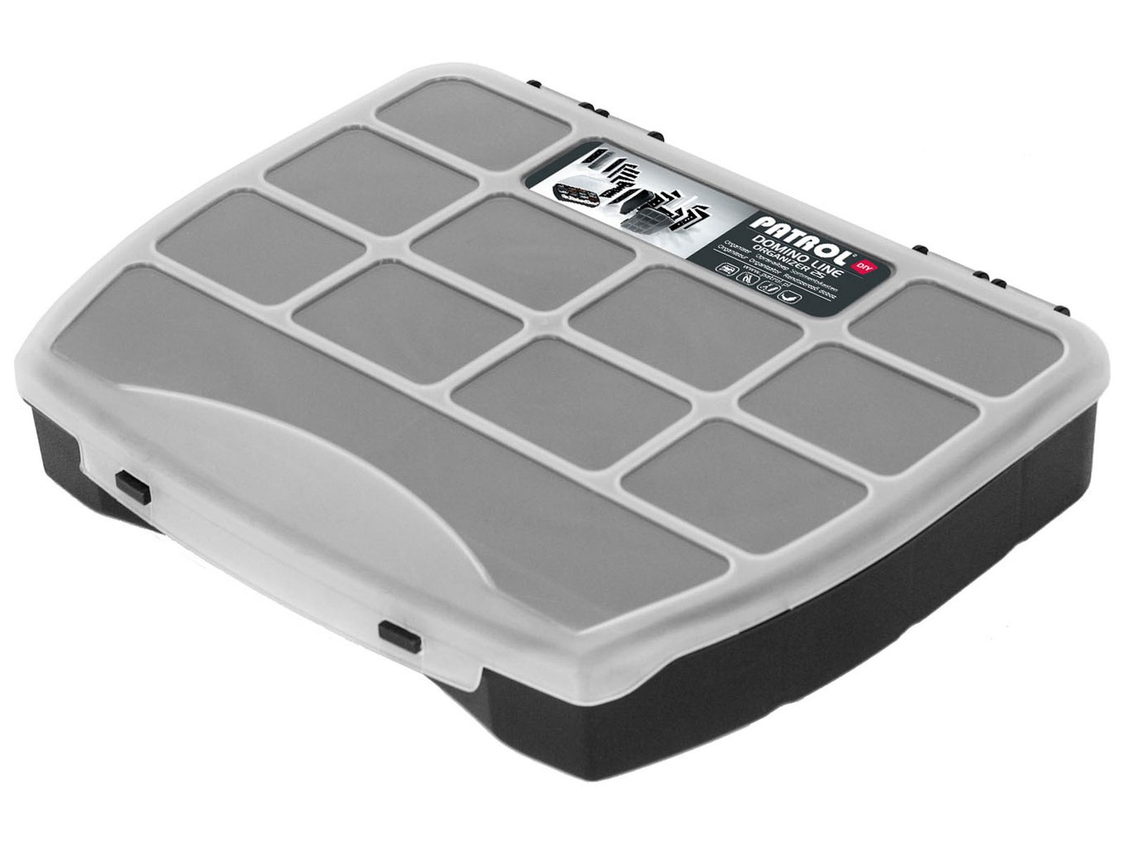 12 přihrádek, 250x200x44mm, materiál plast.