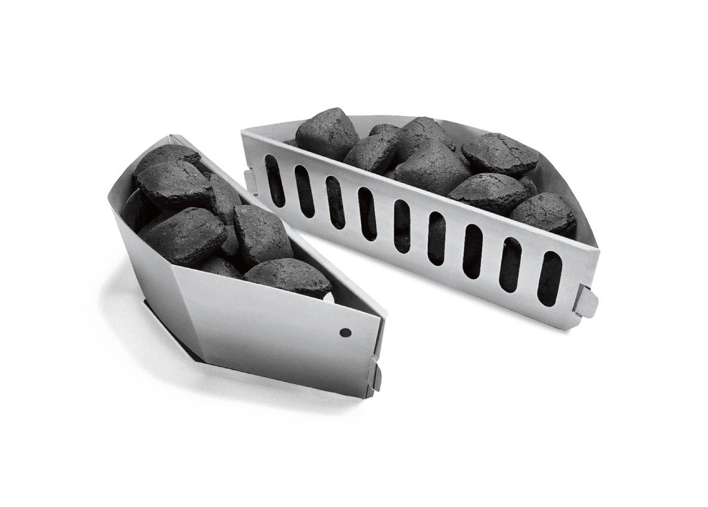 Palivové nádoby Weber Char-Basket jsou praktický doplněk pro kotlové grily na dřevěné uhlí, se kterým si výrazně usnadníte práci s palivem a získáte lepší kontrolu nad žárem. Umožní Vám rychle a rovnoměrně uspořádat rozpálené uhlí nebo brikety na palivovém roštu tak, abyste mohli pohodlně grilovat přímou i nepřímou metodou.
