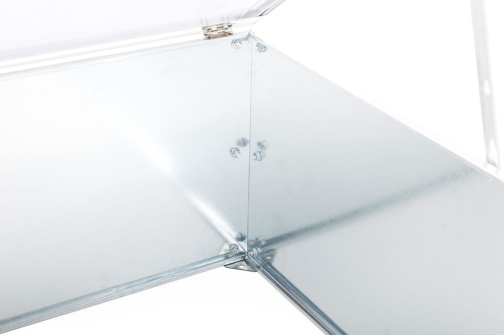 Rohové díly pařeniště jsou předchystány pro bezpečné ukotvení do země. V každém rohu je otvor pro kotvící prvek, jehož použitím zvýšíte odolnost pařeniště vůči nepříznivým povětrnostním vlivům.