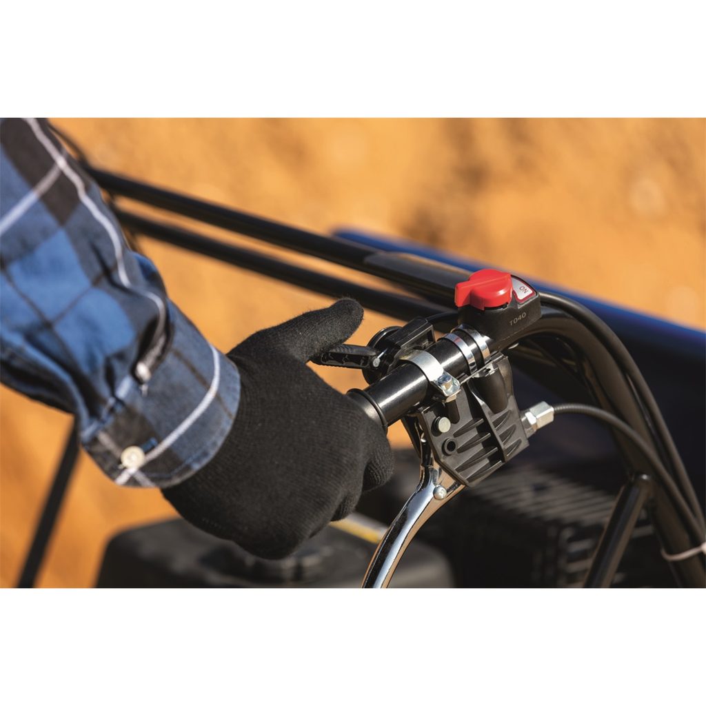 Pohon pásy zaručuje skvělou průchodnost i velkou svahovou dostupnost, přičemž šířka pásů přispívá i k ochraně podkladu. Obsluha všech ovládacích prvků je velmi jednoduchá. Páčkami na rukojeti snadno řídíte otáčení, brzda se aktivuje automaticky při uvolnění páky spojky a rovněž páka řazení třístupňové převodovky je ve snadném dosahu obsluhy.