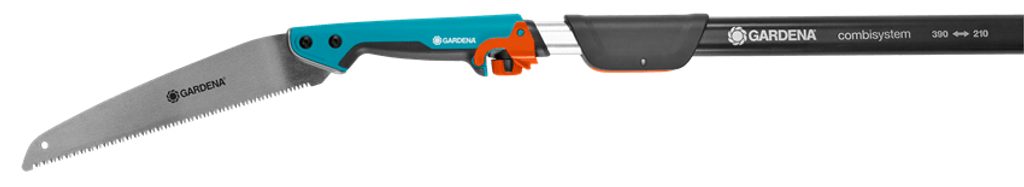 Pokud byste chtěli stříhat větve až ve výšce 5 metrů můžete zahradní pilku jednoduše prodloužit pomocí combisystem teleskopické násady. Jednoduše upevněte pilku k násadě combisystem pomocí šroubu. Bezpečnostní zámek zaručuje, že připojení bude bezpečné. Přesné ozubení s impulzně kalenými špičkami zubů a dvojitý výbrus zaručuje bezpečný střih.