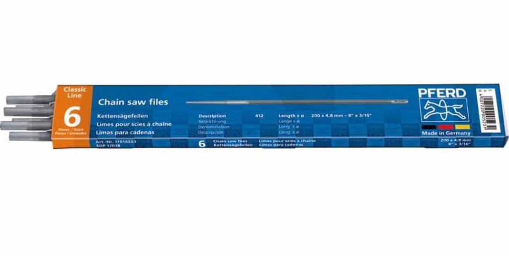 Pilník firmy Pferd na ostření řetězů motorových pil mají přesný spirálový sek. Pferd pro extrémní ostrost a obzvláště vysokou životnost.