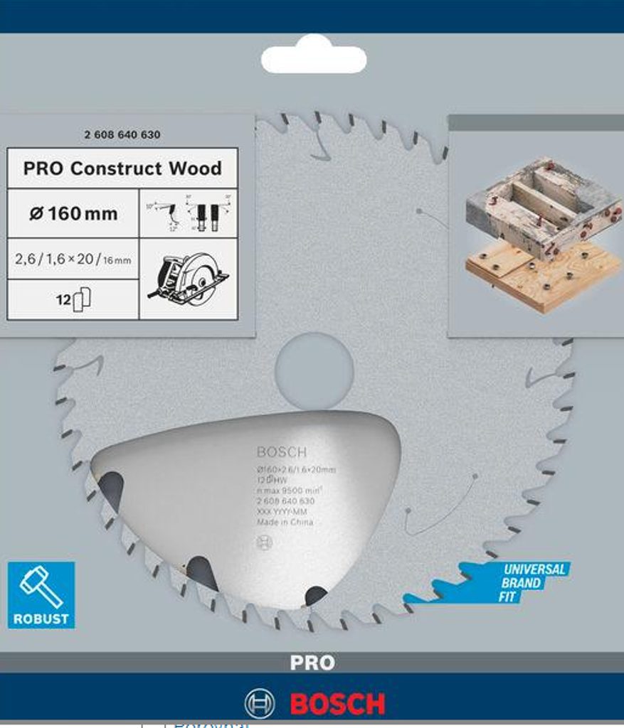 Pilový kotouč Bosch PRO Construct Wood 160 mm 12T 2608640630