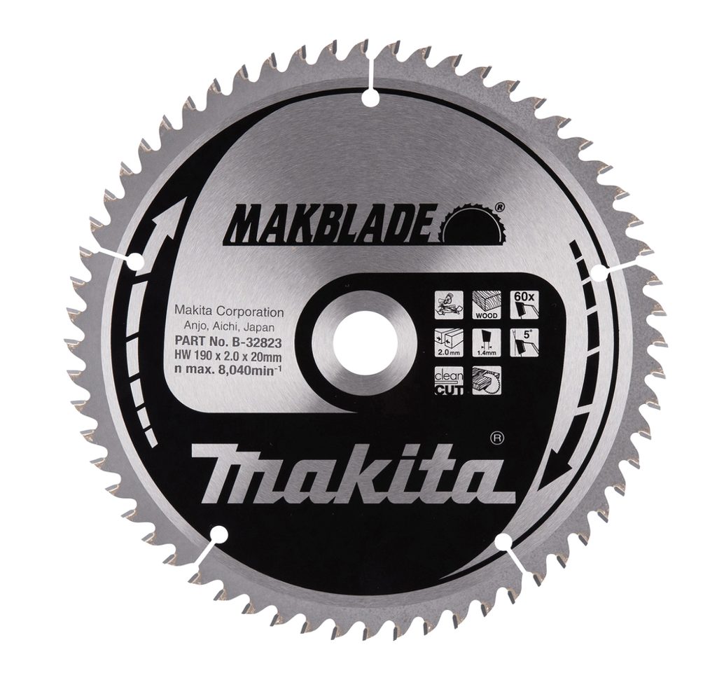 Standardní řada pilových kotoučů Makita pro řezání dřeva pokosovými pilami. Konstrukce kotoučů je upravená pro spolehlivý řez a dlouhou životnost.