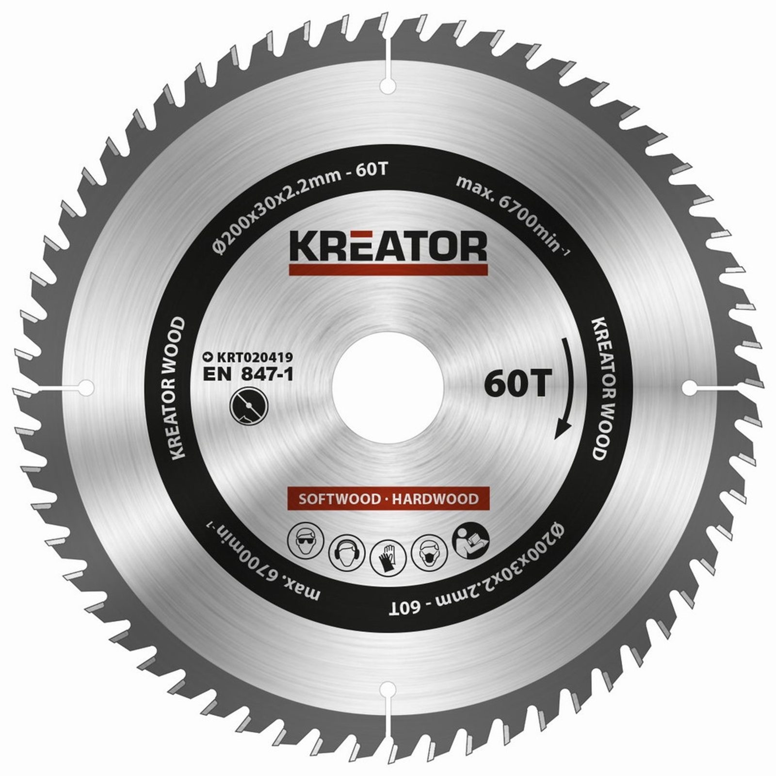 Pilový kotouč na dřevo Kreator 200 mm 60T KRT020419