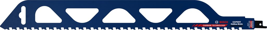 Pilový list Bosch Hollow Brick výkonnostní třídy EXPERT je navržen pro efektivní a rychlé řezání dutých cihel přímo na pracovišti. Na rozdíl od většiny běžných pilových listů, které se v abrazivních minerálních materiálech rychle opotřebovávají, tento speciální karbidový list zajišťuje dlouhou životnost ostří. Umožňuje zedníkům přesně upravovat velikost dutých cihel, aniž by docházelo k poškození pilového listu.