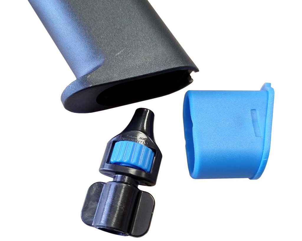 Nerezová jehla s teflonovou kuličkou a tělo potažené teflonovou vrstvou zajišťují dlouhou životnost a odolnost proti opotřebení. Díky mechanickému systému otevírání a zavírání adaptéru a ergonomické plastové rukojeti je manipulace s pistolí snadná a komfortní.