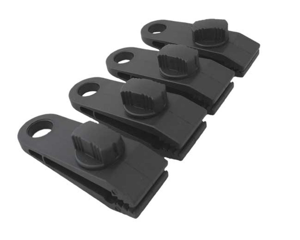 Držáky vhodné pro zajištění stanu či zakrývací plachty.