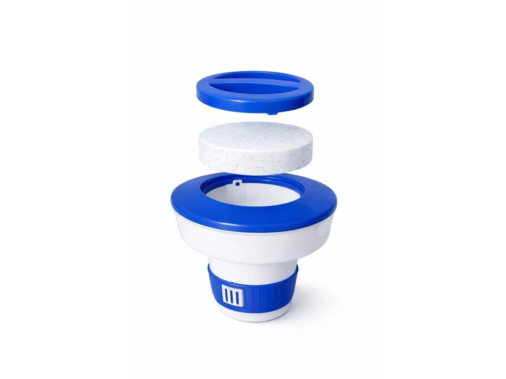 Tento plovák je určen pro maxi tablety (200 g) a pokládá se přímo na vodní hladinu bazénu. Díky posuvnému uzávěru můžete regulovat, jak rychle se bude tableta rozpouštět. Průměr plováku je 19 cm. Je vhodný do všech typů bazénů.
