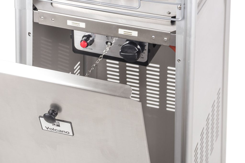Ovládání je snadné, stačí jen napojit tepelný zářič na 10 kg propan butanovou lahev, pro jejíž ukládání je prostor ve stojanu teplometu. Pak zmáčknete tlačítko mechanického piezo elektrického zapalování a exteriérový tepelný zářič Volcano začne hřát.