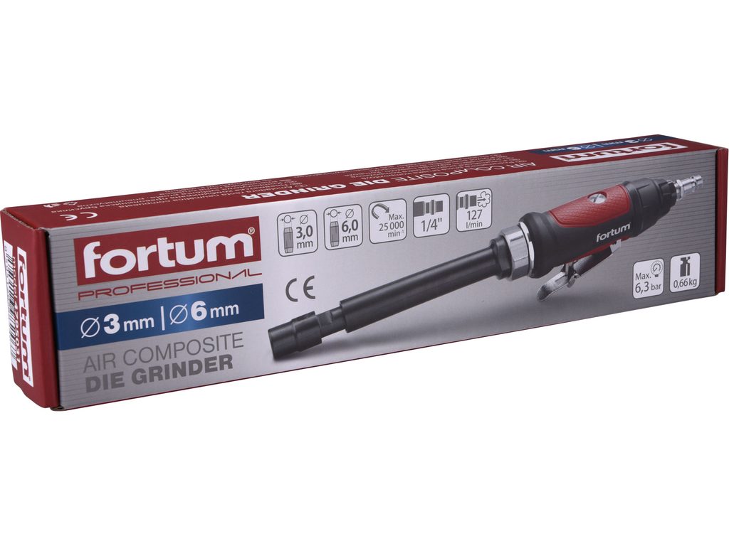 Pneumatická přímá bruska je určena k náročné práci při broušení svarů a špatně přístupných míst, ale také k jemnému broušení, odhrotování, frézování a gravírování. Prodloužené tělo brusky umožňuje práci hluboko uvnitř úzkých dutin nebo trubek. Nářadí umožňuje výměnu a montáž upínacích kleštin pro uchycení nástrojů s průměrem stopky 6 nebo 3 mm.