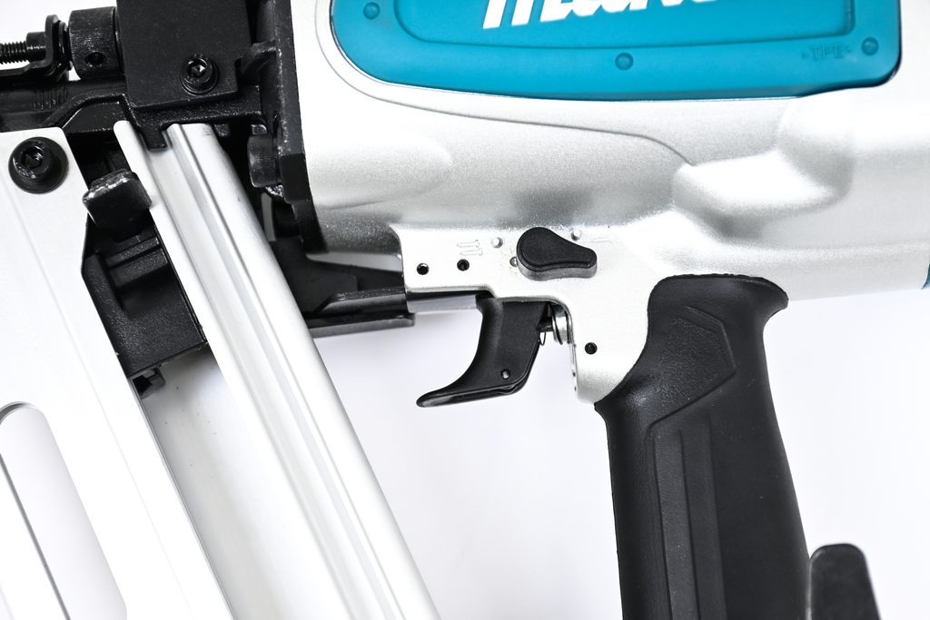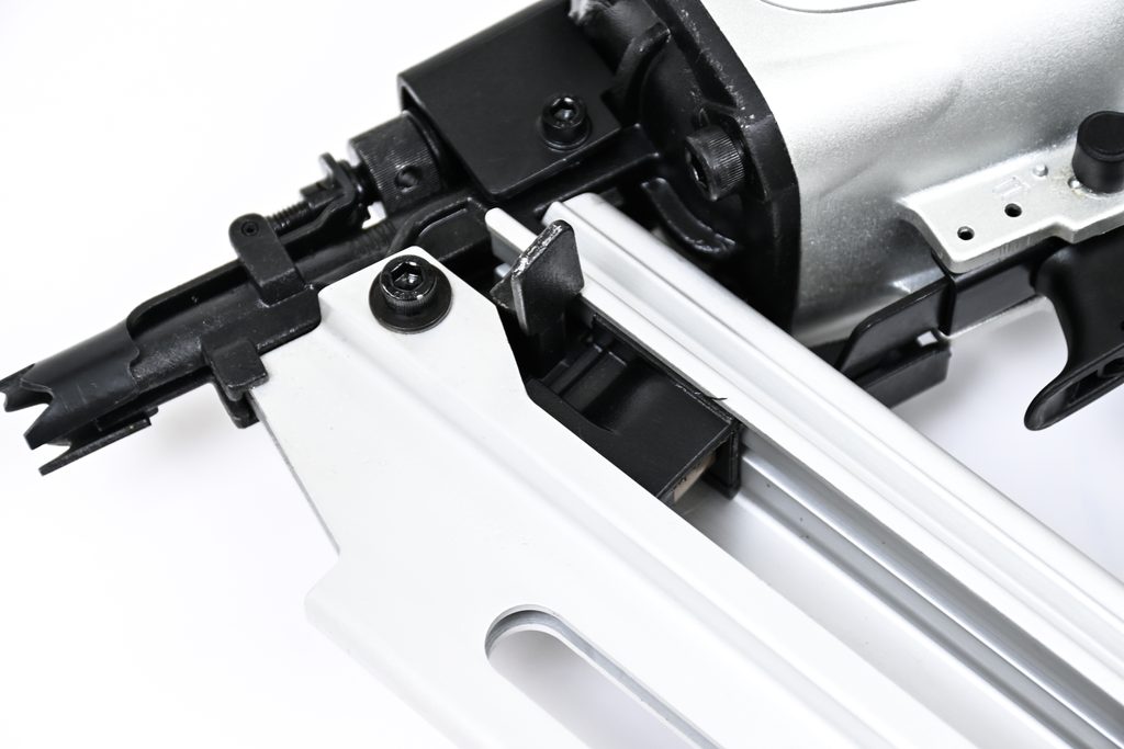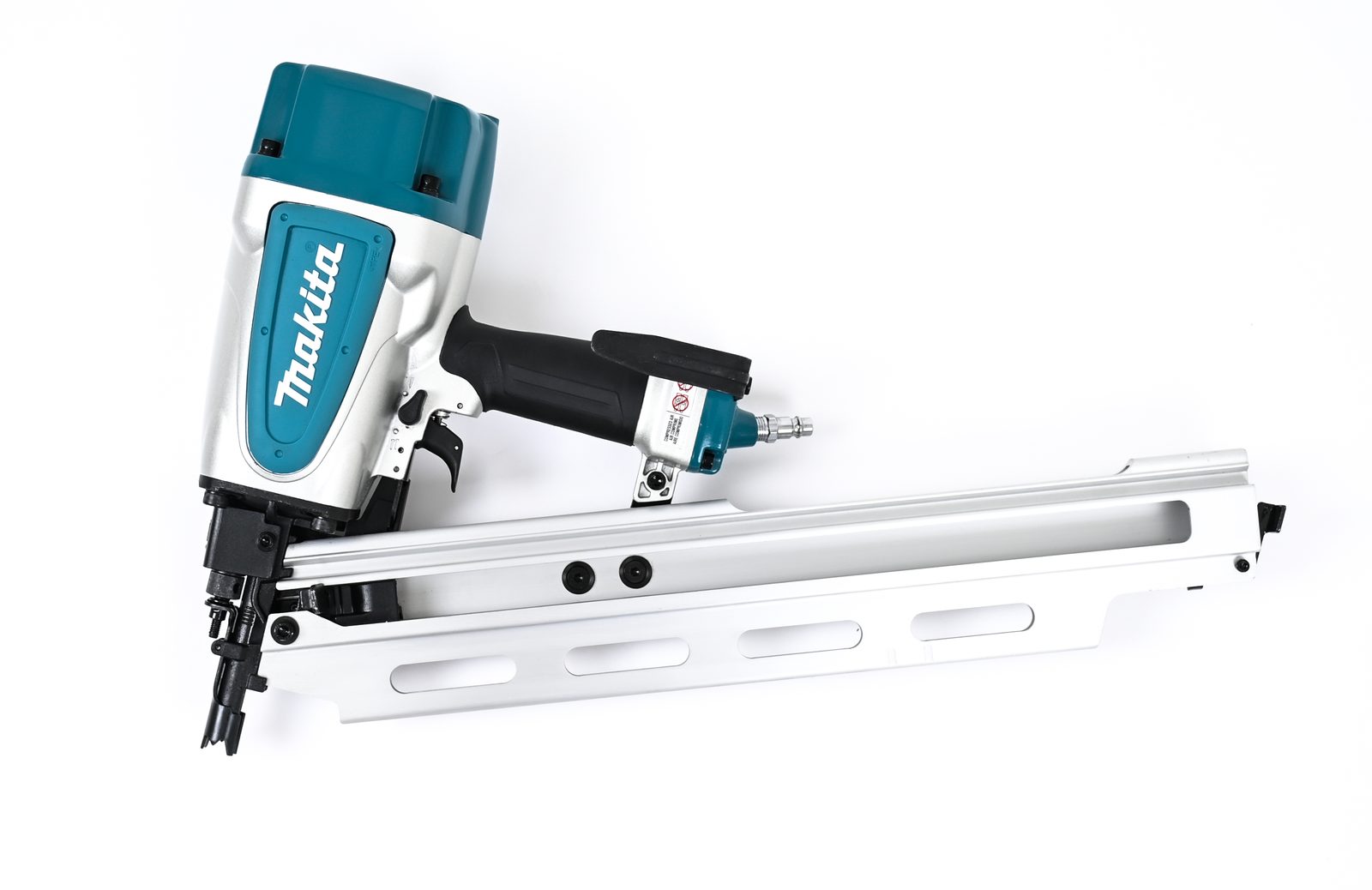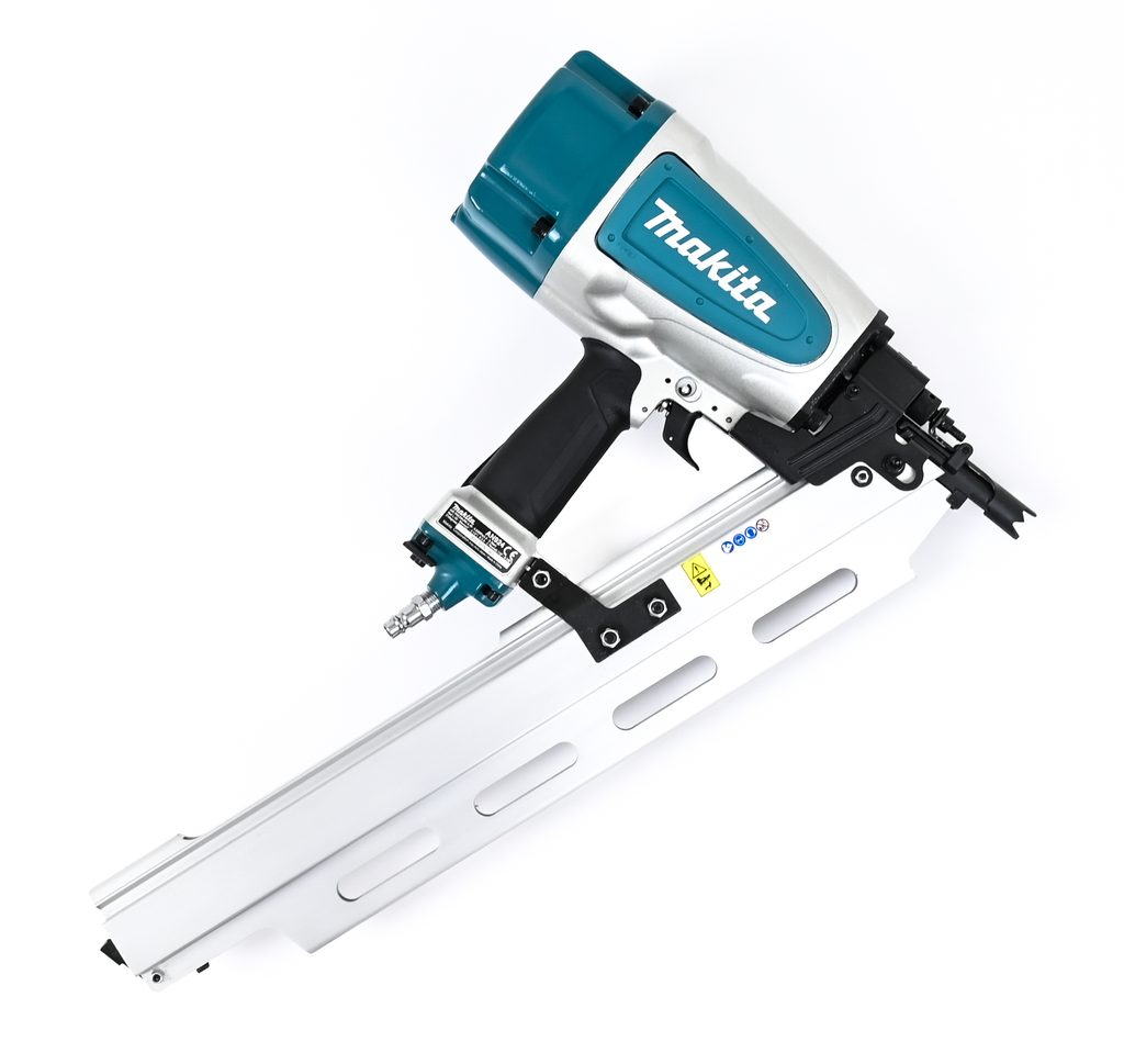 Pneumatická hřebíkovačka pro hřebíky s kulatou hlavou páskované v plastu pod úhlem 21°. Má možnost přepnutí režimu jednotlivého a sériového hřebíkování.