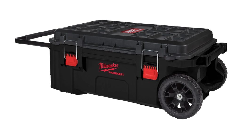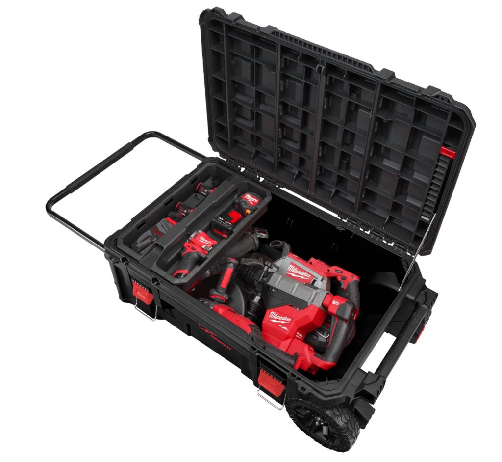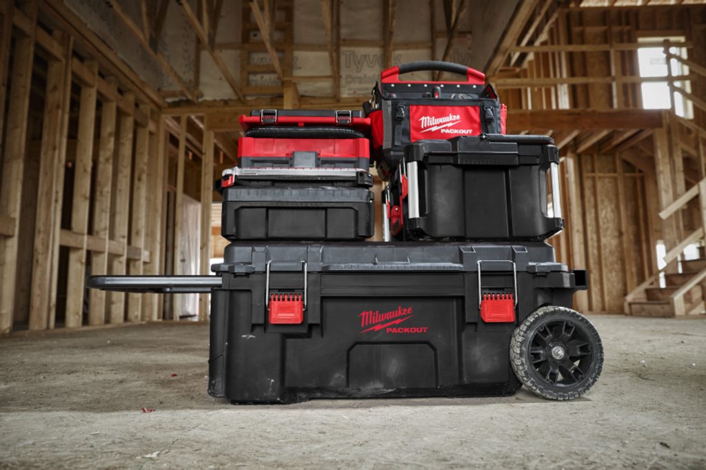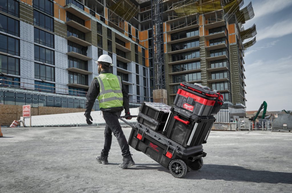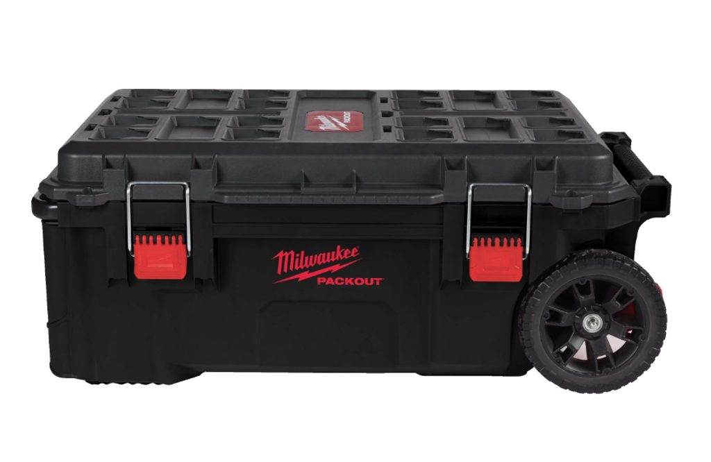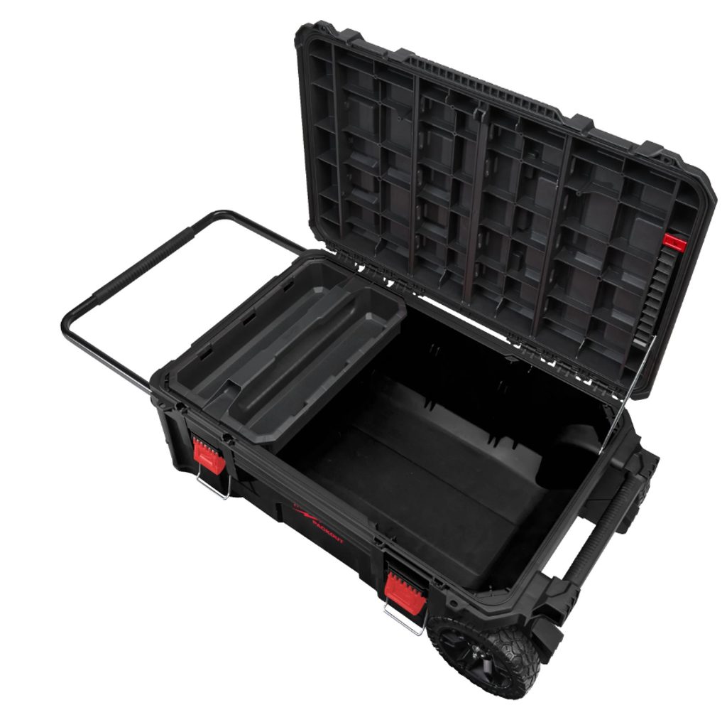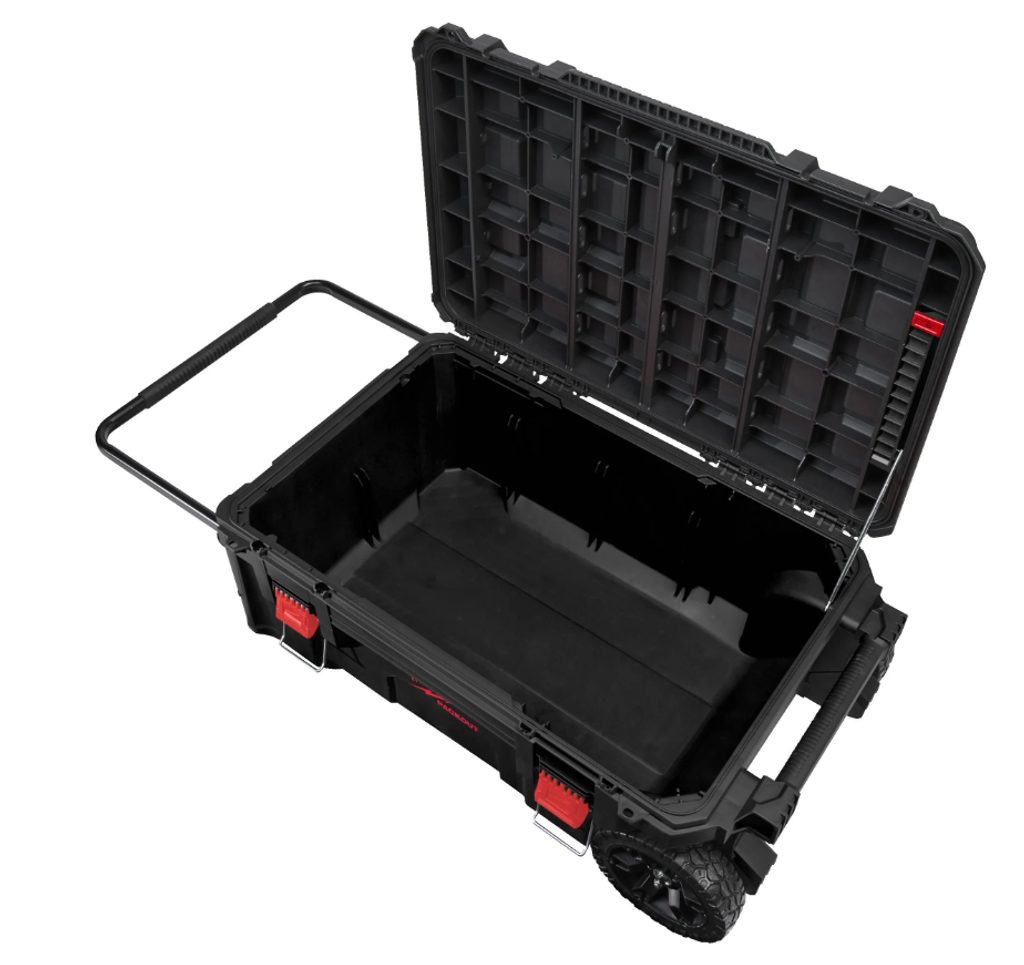 Pojízdný box na nářadí Milwaukee z modulárního skladovacího systému PACKOUT™ je navržen tak, aby odolával náročným podmínkám na pracovišti. Tento box je vyroben z nárazuvzdorného polymeru, což zaručuje jeho vysokou odolnost a dlouhou životnost. Díky nosnosti až 113 kg si poradí i s těžkým nářadím a materiálem.