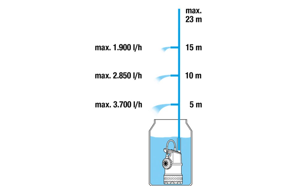 Ponorné tlakové čerpadlo 4700/2 je určeno k čerpání vody pro účely zavlažování zahrady a odvodňování. Robustní, pevné a stabilní ponorné čerpadlo, které čerpá až 4700 litrů vody za hodinu. Může se ponořit, aby dosáhlo vodu v maximální hloubce 7 metrů. Předfiltr zabraňuje ucpání postřikovačů nebo poškození čerpadla a má systém rychlého uvolnění pro snadné čištění a údržbu.