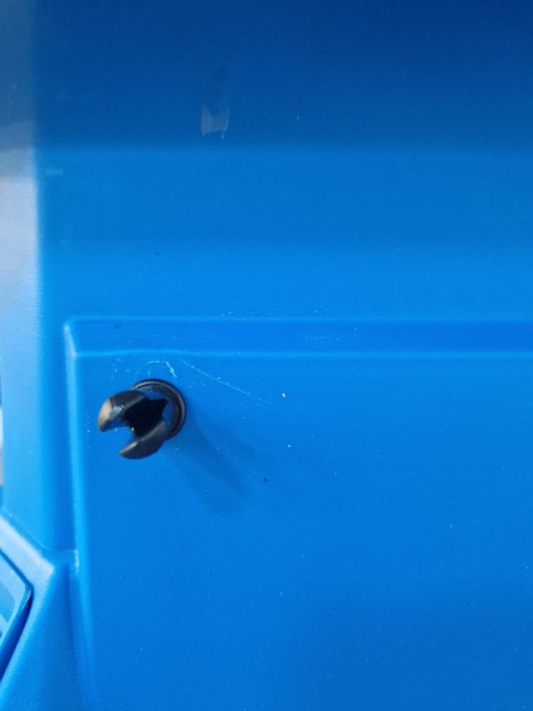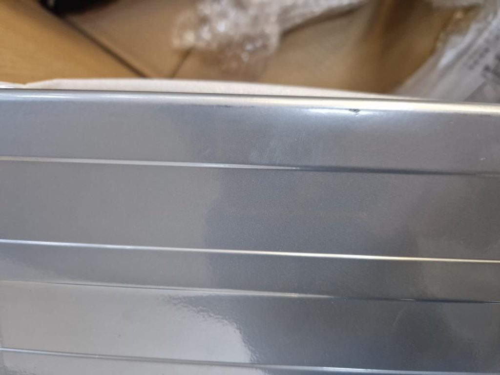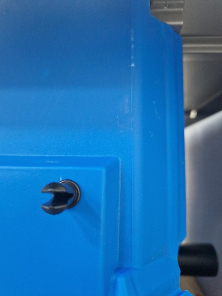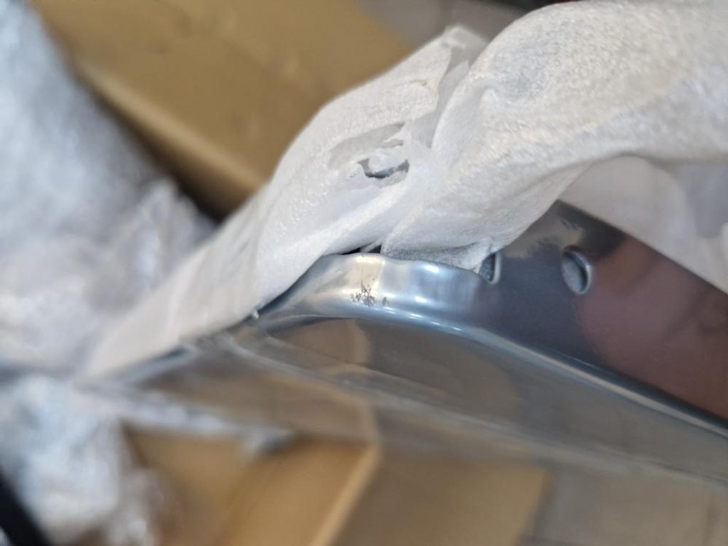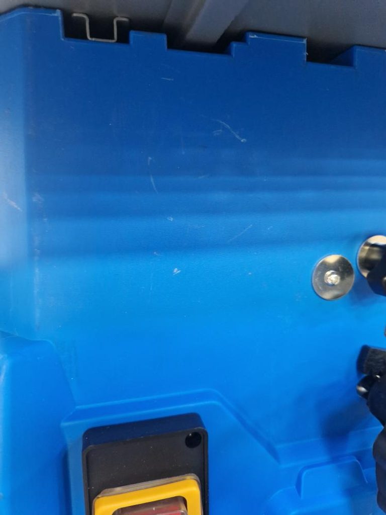 Nová pila, která byla přepravou poškrábána, a ušpiněna, má drobné oděrky povrchu, odlepený kryt nohy, má originální balení vč. návodu a příslušenství.