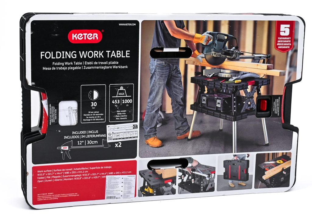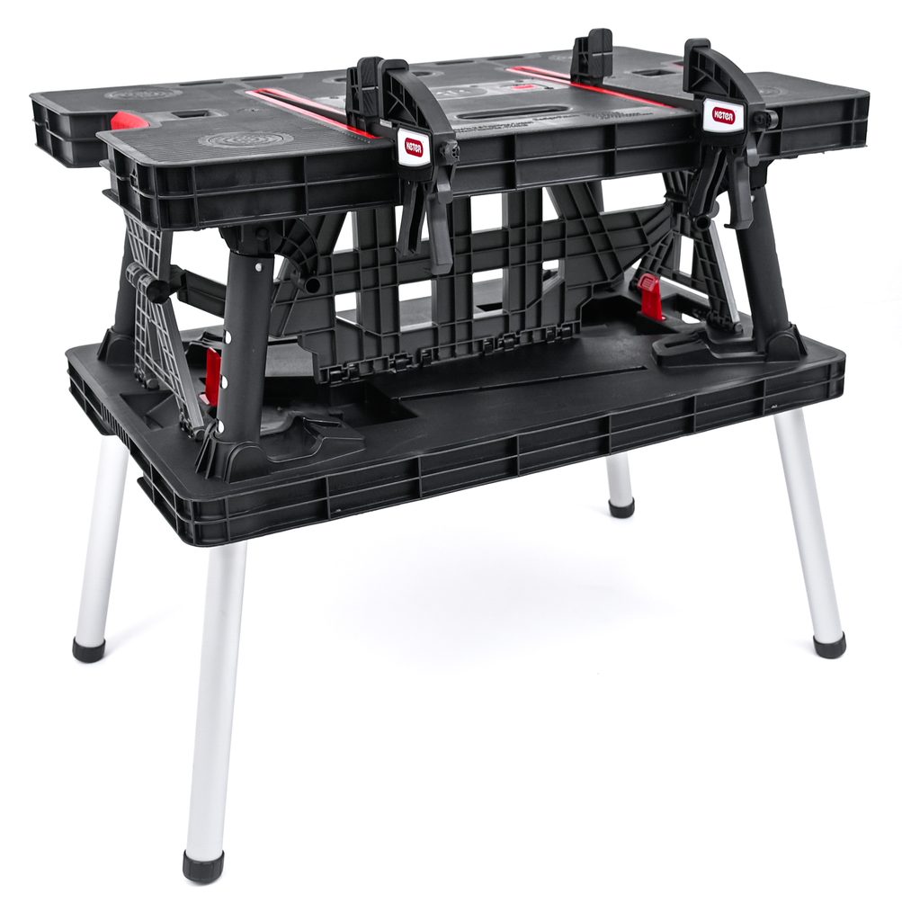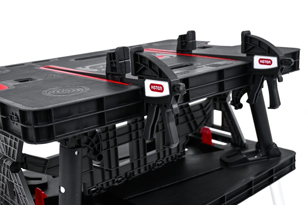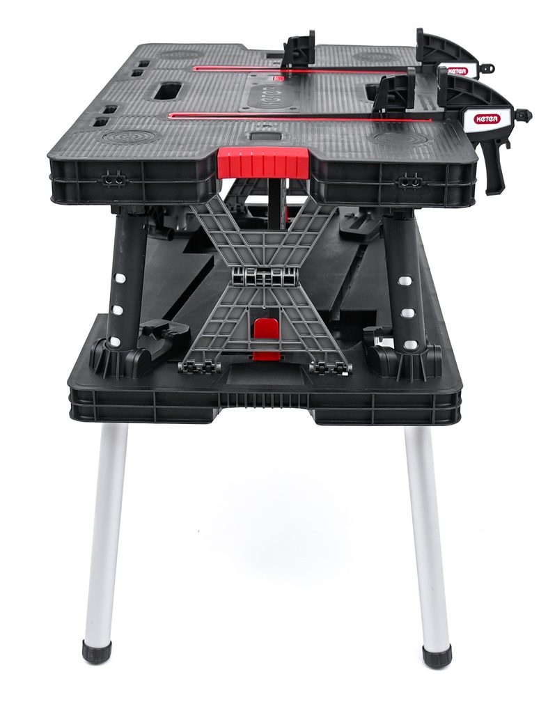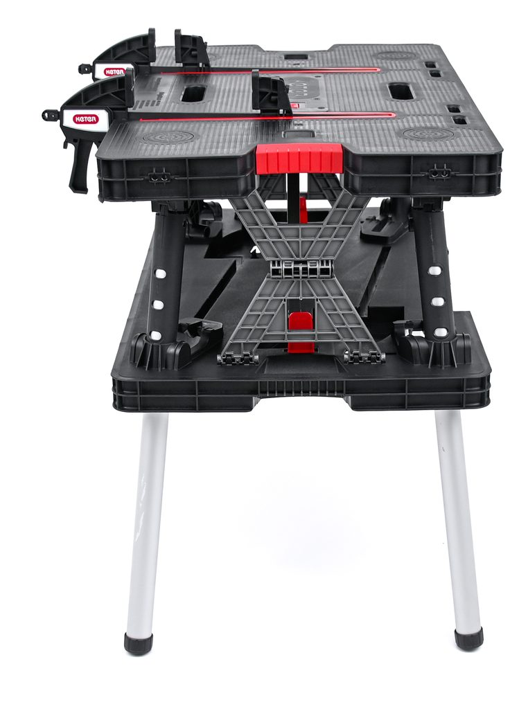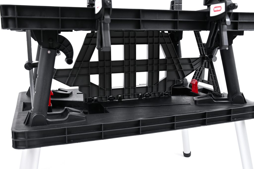 Velká pracovní plocha stolu a odolnost do 453 kg zajišťují, že na něm můžete vykonávat i složité práce. V balení s výrobkem jsou dvě svorky 30 cm/12” Clamps, které zajišťují stabilitu pracovního povrchu.