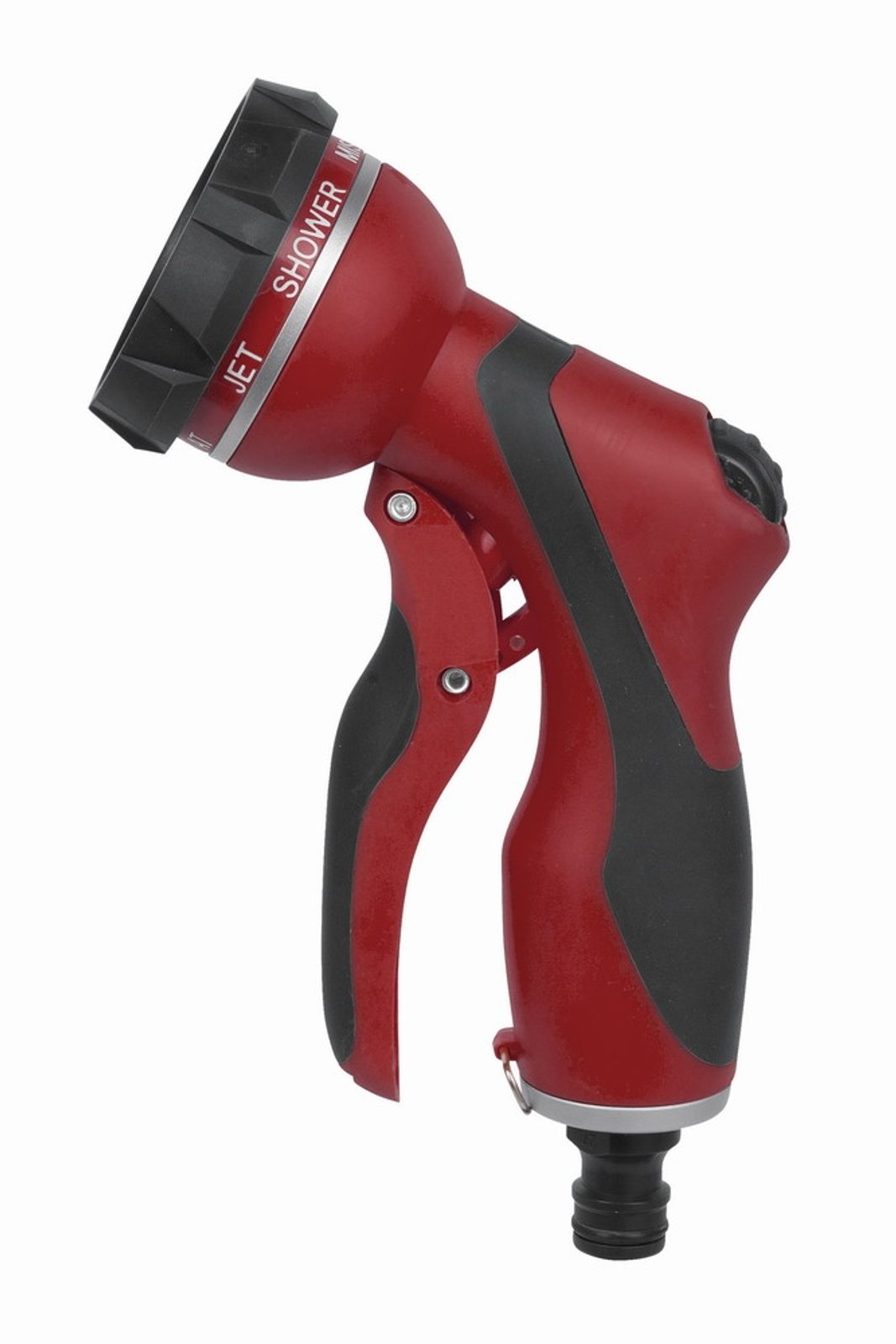 Zahradní pistole Kreator KRTGR6122 má otočnou hlavici, která nabízí hned 7 různých typů postřiku – od jemné mlhy pro citlivé sazenice, přes klasický sprchový proud, až po silný paprsek vhodný třeba na mytí zahradního náčiní nebo auta. Vše si jednoduše nastavíte jednou rukou přímo na hlavici.