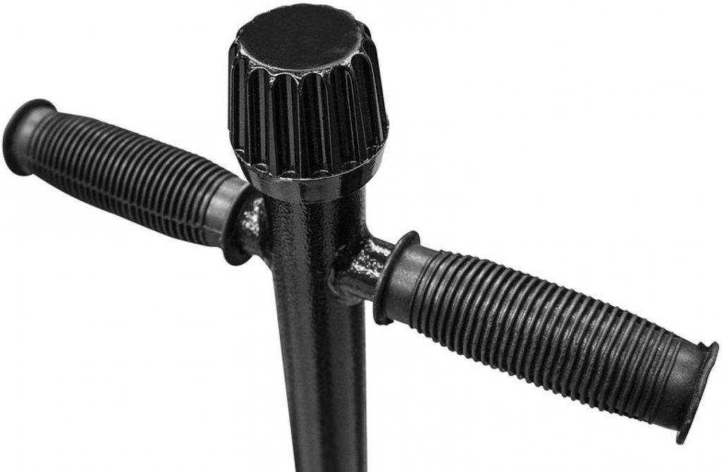 Má protáhlý rám zvedáku (délka: 1.180 mm; snadná dosažitelnost zvedacích bodů dále pod vozidlem), vysokozdvižné nosné rameno (max. výška: 810 mm), profilovaný zátěžový talíř (průměr: 130 mm; včetně pryžové dosedací podložky) a plynulé spouštění břemen pootočením výpustného ventilu.