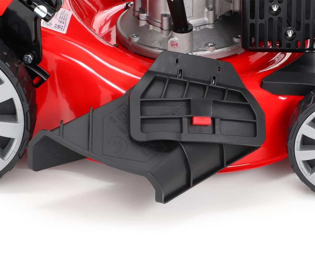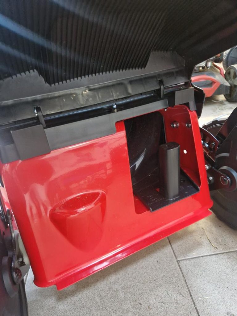 | Funkce | Centrální nastavení výšky , Mulčování , Boční výhoz , Kuličková ložiska , Primer , Manuální start , Ovládání otáček motoru , Ukazatel plnosti koše |