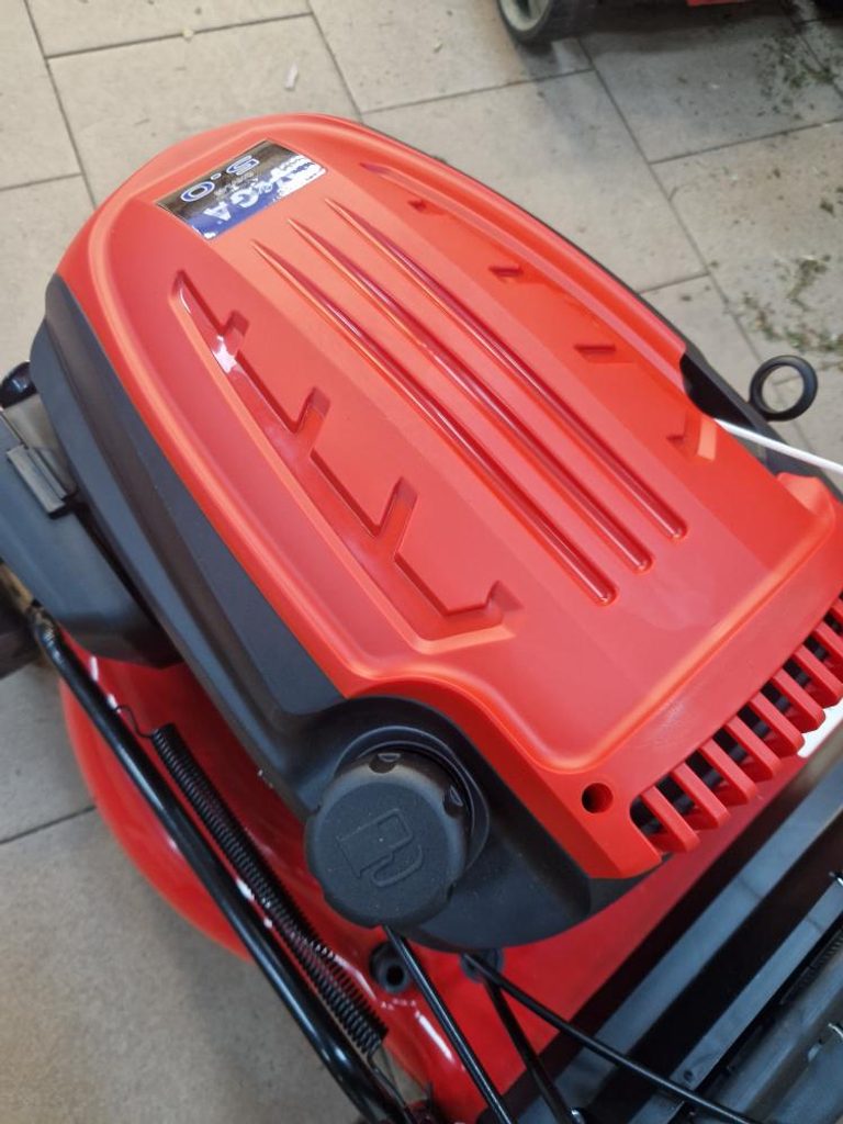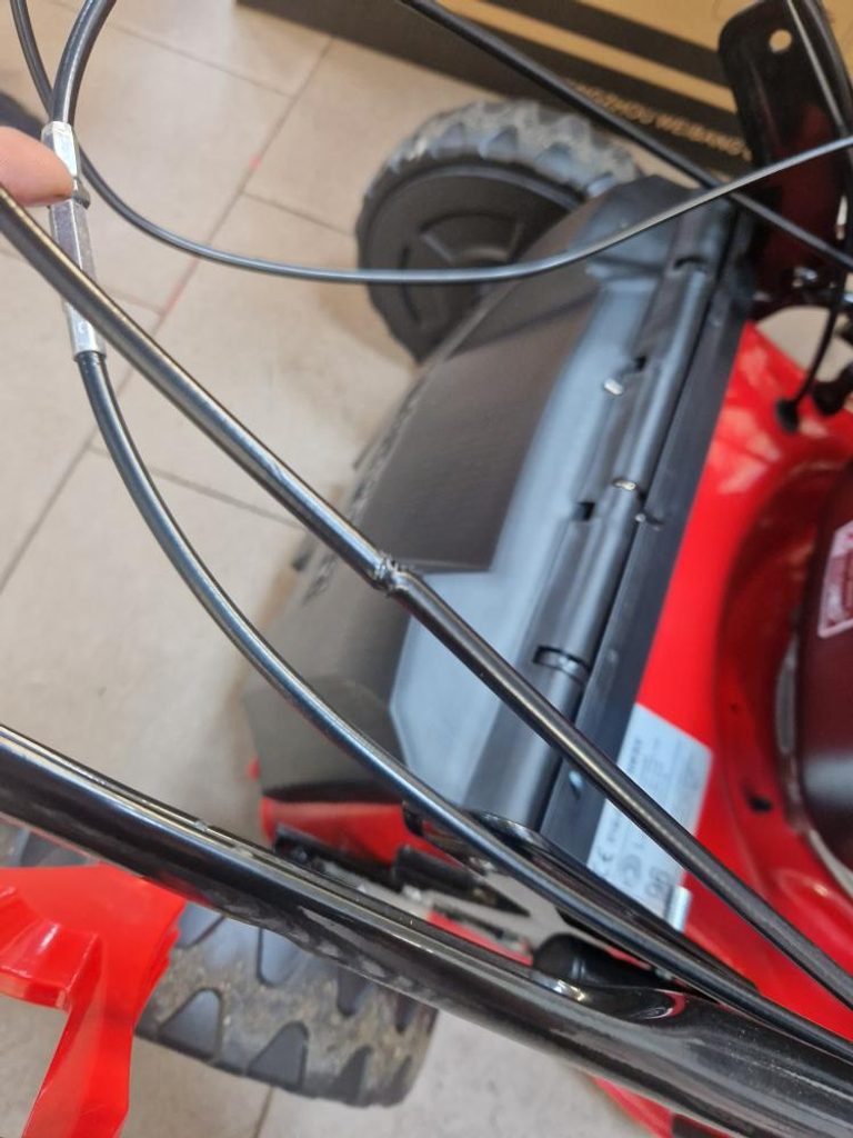 Benzínová sekačka byla krátce použita k odzkoušení, má drobné oděrky povrchu, lehce ušpiněna, má poškozené lanko - nemá vliv na funkčnost, nemá originální obal, vč. návodu a příslušenství (mulčovací záslepka, boční výhoz).