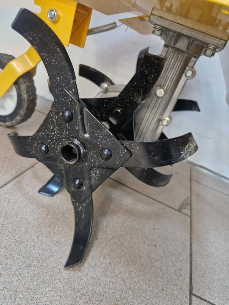 Krátce použitý benzínový kultivátor, je funkční, má drobné oděrky povrchu, ušpiněn od zkoušení, má návod, nemá originální balení.