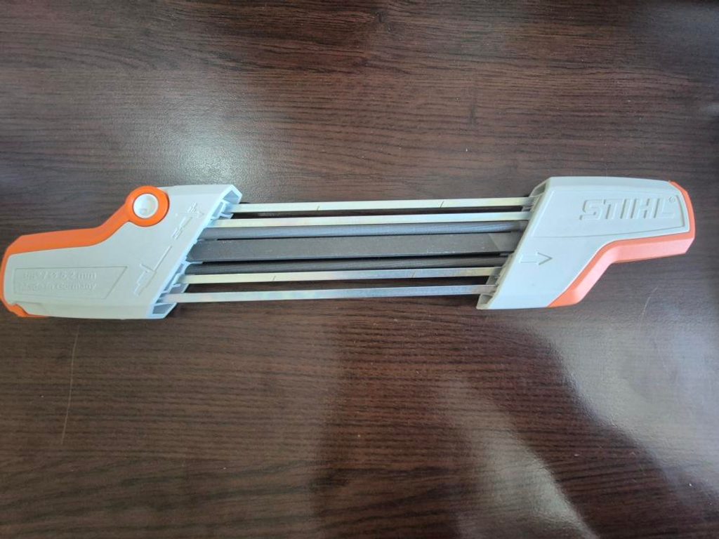 Držák pilníku STIHL s funkcí vyrovnávání tolerance pilníku (výhradně u STIHL) má v sobě již zabudovaný kulatý i plochý pilník. Umožňuje tak v jednom kroku pohodlně a rychle přebrousit zuby řetězu a zároveň přesně nastavit omezovače hloubky, aniž byste museli měnit nástroj.