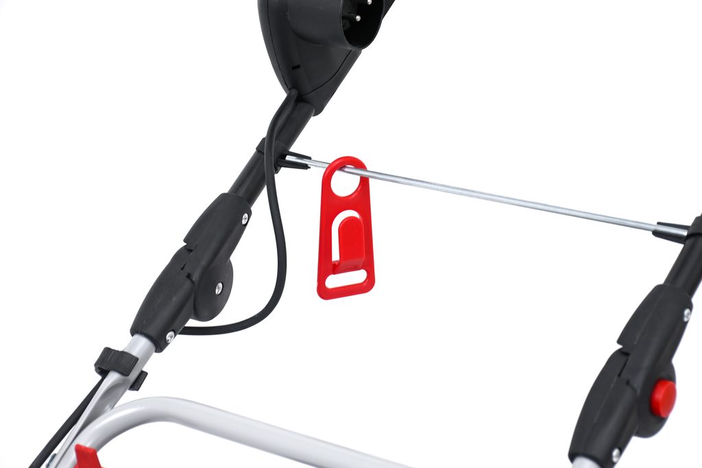 Díky bezpečnostnímu spínači se zabezpečením kabelu proti vytržení ze zásuvky je startování i provoz sekačky zcela bezpečný a snadný. Velké madlo pro snadné přenášení sekačky pomáhá při překonávání překážek, sklopné držadlo potom umožňuje úsporné skladování sekačky bez velkých nároků na prostor.