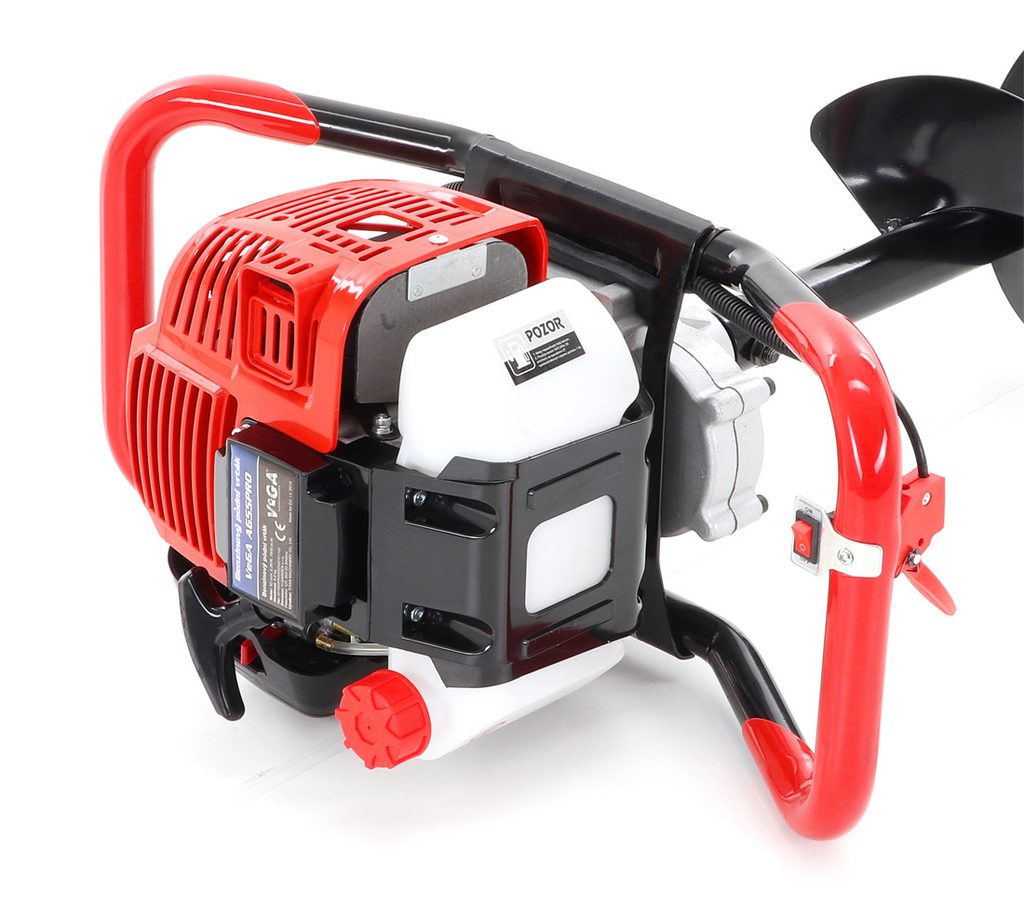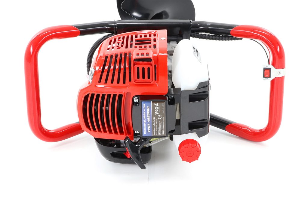 Benzínový vrták VeGa AG55 PRO má vzduchem chlazený jednoválcový dvoutaktní motor s kluznou odstředivou spojkou. Ideální k vrtání jednoduchých půdních otvorů od 10, 15 nebo 20 cm. Průměr odpovídá použitému vrtáku. Praktická rukojeť zemního vrtáku. Vhodný ke snadnému hloubení zemních děr pro stavbu plotů, děr pro sázení stromků. Vypínač a regulace otáček na pravé rukojeti.
