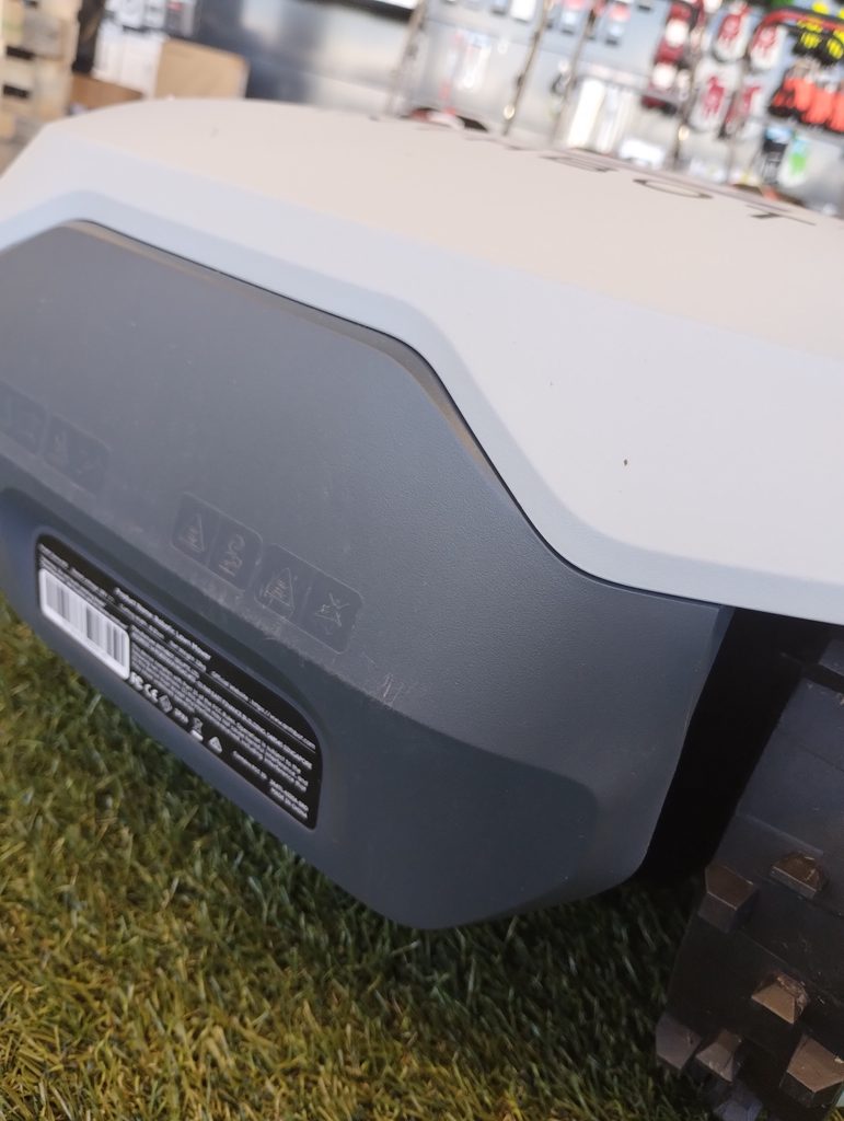 Robotická sekačka je použita, byla používána krátce, má drobné oděrky povrchu. Funkční, kompletní balení.