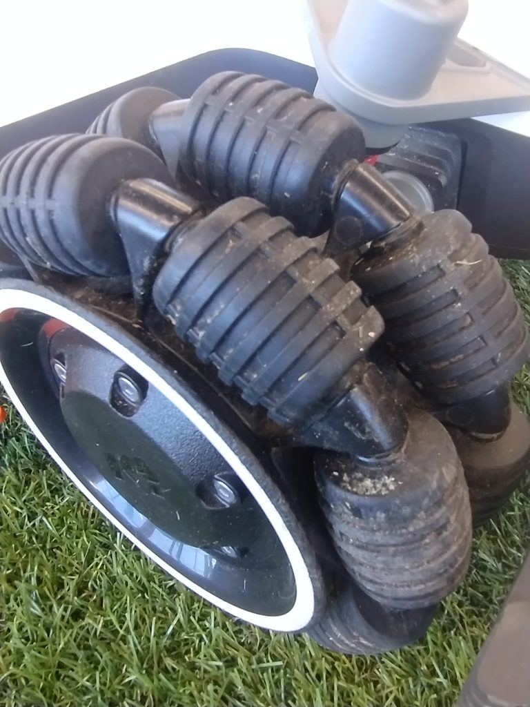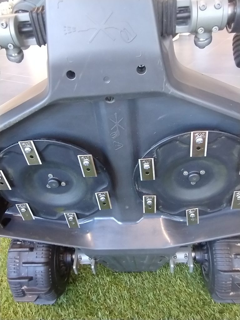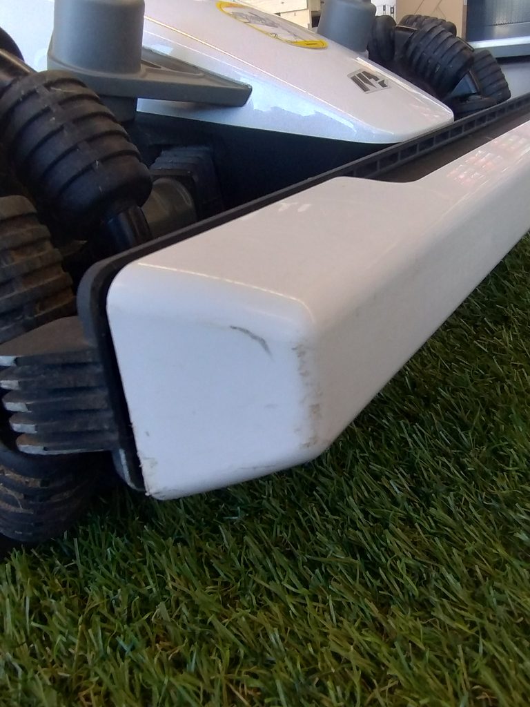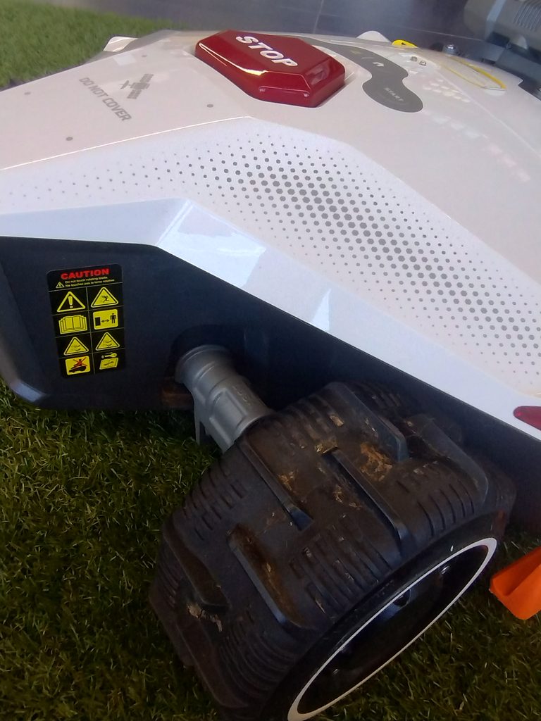 Robotická sekačka byla použita, má drobné oděrky povrchu, ušpiněna od použití, funkční, má kompletní příslušenství.