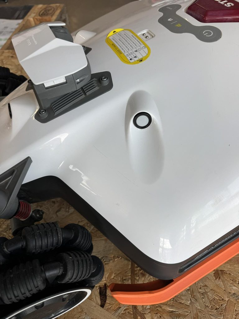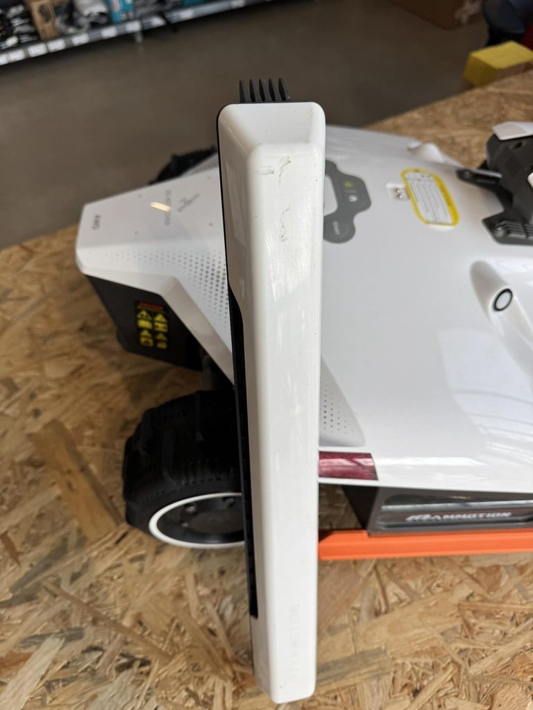 Robotická sekačka byla používána jako předváděcí, má drobné oděrky povrchu na těle i nárazníku, běžně opotřebená, je funkční, vč. originální krabice bez výplně, vše potřebné příslušenství je součástí - bez náhradních nožů a manuálu.