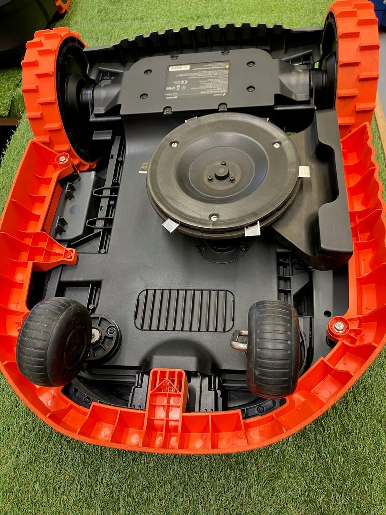 Robotická sekačka byla použita jako předváděcí, má drobné oděrky povrchu, kompletní příslušenství, vč. originálního balení.