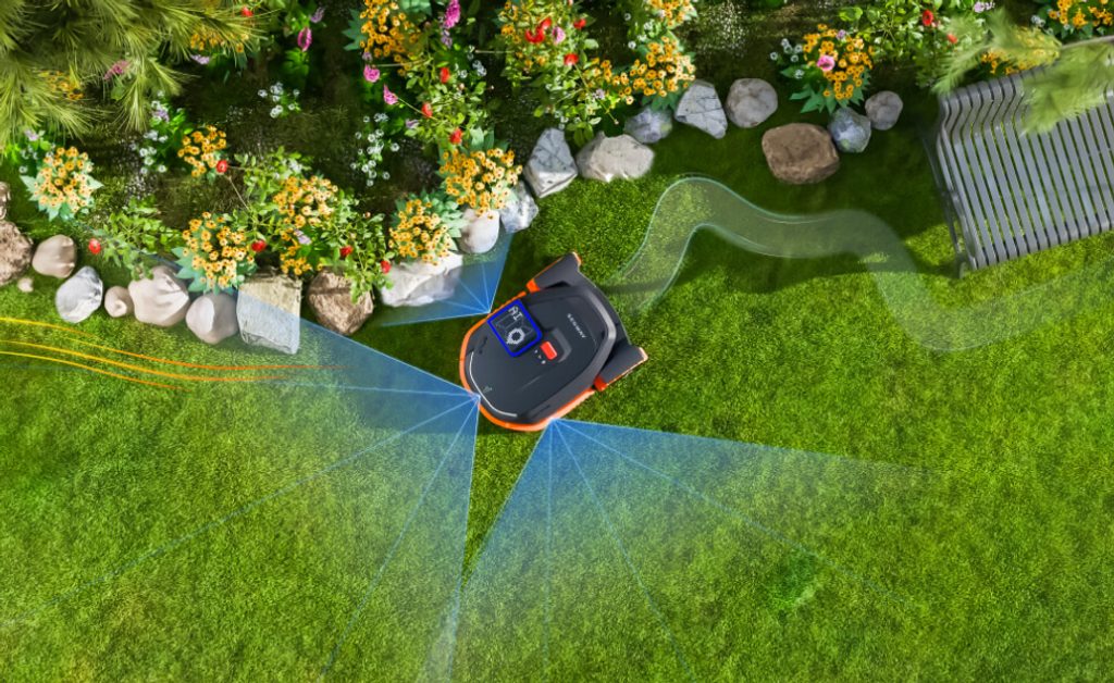 Díky vylepšené technologii VisionFence 2.0 má sekačka rozšířené zorné pole až na 300°, což umožňuje ještě efektivnější vyhýbání se překážkám. AI řízené plánování trasy optimalizuje pohyb sekačky a zajišťuje plynulý a bezpečný provoz i v členitých prostorech.