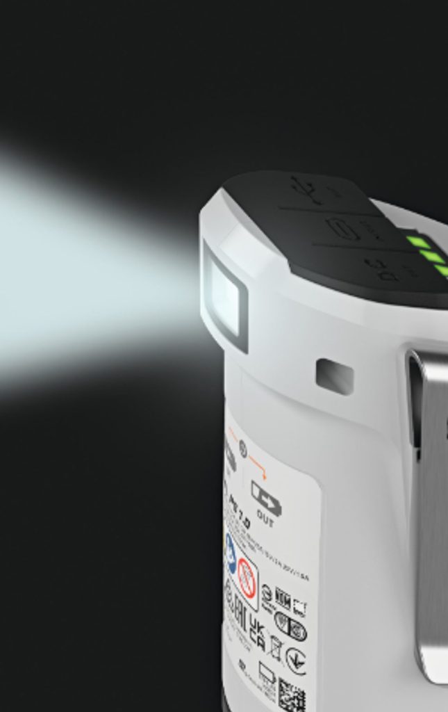 Zařízení je vybavené integrovanou LED svítilnou s dvoustupňovým režimem, která zajistí jistotu a lepší orientaci i za tmy. Použití je jednoduché – powerbanka má oddělené spínače pro napájení a osvětlení, takže je ovládání maximálně pohodlné. LED indikátor přehledně zobrazuje aktuální stav nabití, abyste měli vždy jasno, kolik energie vám zbývá.