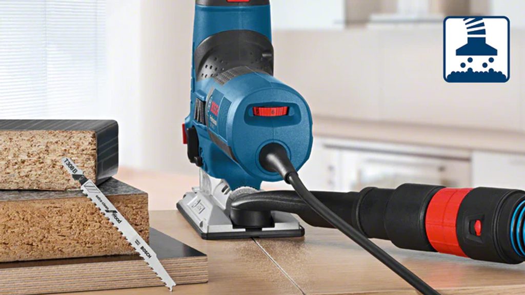 Kompatibilita s odsávacími systémy – pila je kompatibilní s odsávacím systémem Bosch Click & Clean i s ostatními vysavači Bosch. Díky tomu pomáhá udržovat pracovní prostředí čisté a zlepšuje viditelnost linie řezu. Kromě toho ji lze při použití adaptéru snadno připojit k vodicím lištám, což umožňuje rovné a precizní řezy.