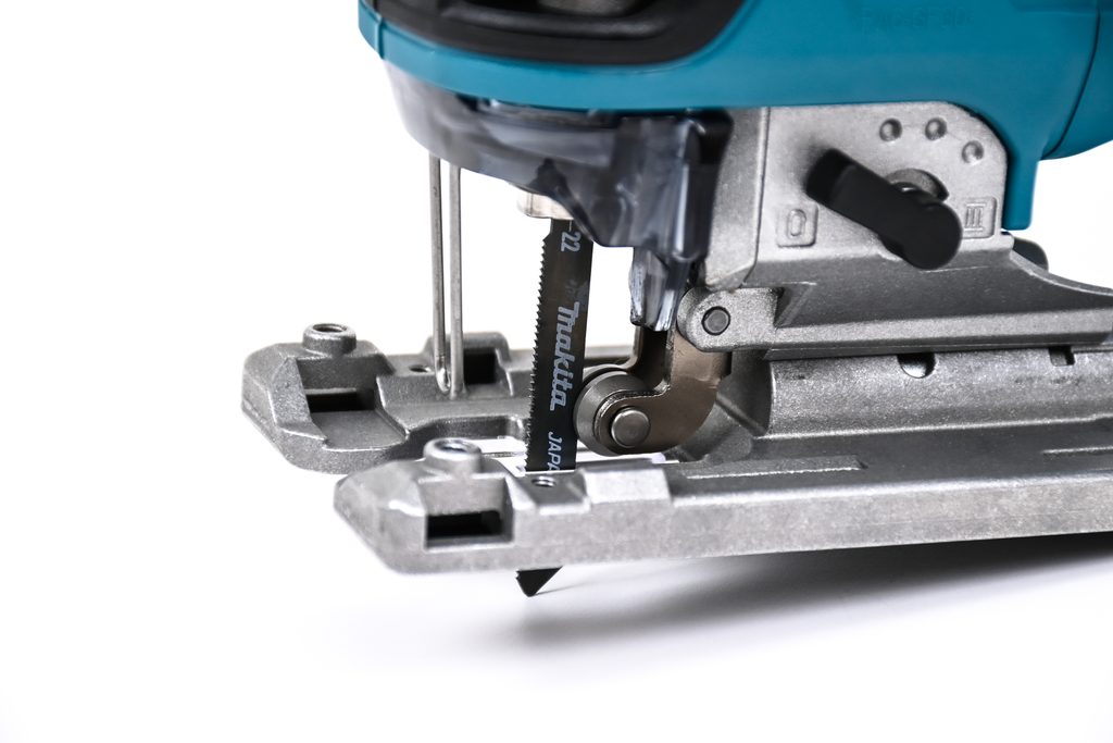 Jednou z vlastností této pily je beznástrojová výměna pilového listu, která výrazně zjednodušuje a zrychluje přípravu nástroje na práci. Díky této funkci můžete snadno a rychle měnit listy bez potřeby dalších nástrojů, což vám umožní efektivně přizpůsobit pilu různým typům řezání.