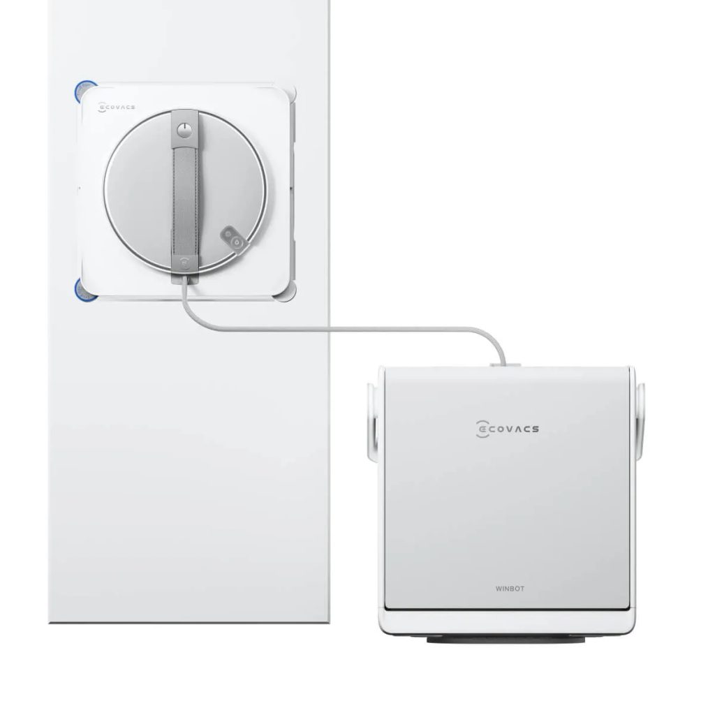 Robotický čistič oken ECOVACS WINBOT W2S OMNI je vybaven přenosnou stanicí typu all-in-one. Ta slouží k napájení robota, díky čemuž nebudete při mytí oken klopýtat o kbelík s vodou, ani o kabely a prodlužovačky. Stanice slouží také k ovládání robota a také k praktickému uskladnění robota a jeho příslušenství, když se nepoužívá.