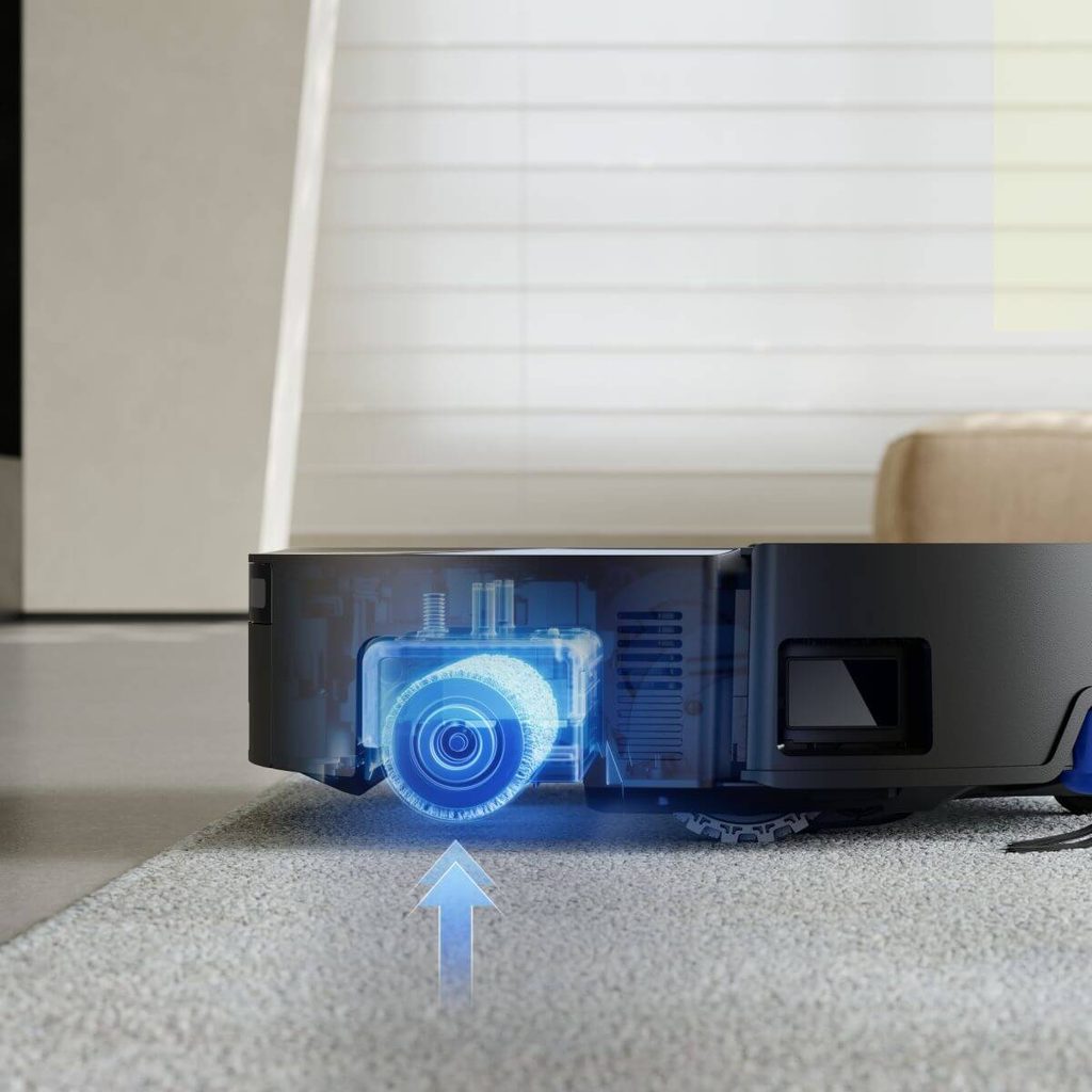 Díky systému Auto-Lift Mopping se mycí válec automaticky zvedne při detekci koberců až o 10 mm, aby nedošlo k jejich namočení. Funkce Suction Boost navíc na kobercích zvyšuje sací výkon, aby je důkladně vyčistil i do hloubky.