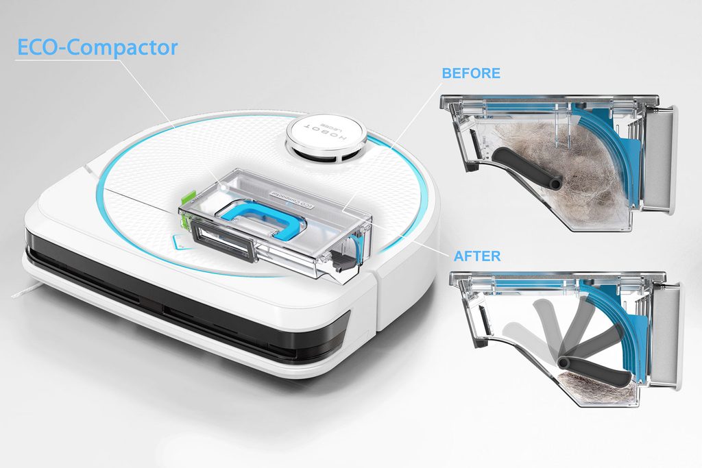 Robotický vysavač HOBOT LEGEE D8 nabízí duální systém vysávání, který zabraňuje namotání nečistot, a díky zabudovanému ECO kompaktoru, který stlačí nasáté nečistoty, je schopen pojmout až pětkrát více nečistot. Je vybaven plochým kmitajícím mopem s antibakteriální úpravou a čtyřmi tryskami, které inteligentně kontrolují dávkování vody pro dokonalý úklid podlahy.