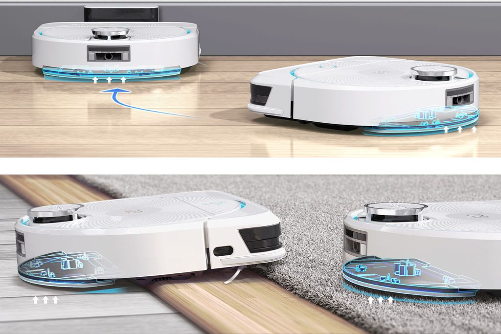 Během vytírání hladkých podlah LEGEE D8 přitlačuje kmitající mop na povrch silou 800 g, čímž zajišťuje nejen dokonalé vysátí, ale současně vytření pomocí speciálního mopu z jemného mikrovlákna. Mop kmitá rychlostí 1300 kmitů za minutu. Čtyři unikátní trysky rozprašují vodu na podlahu, která je uklízena, a mop následně podlahu setře a vyleští. Při přejetí na koberec se mop automaticky zvedne o 7 mm nad povrch koberce, zvýší sání a vysaje i koberec. Po návratu na hladkou podlahu se chytrý mop vrátí zpět.