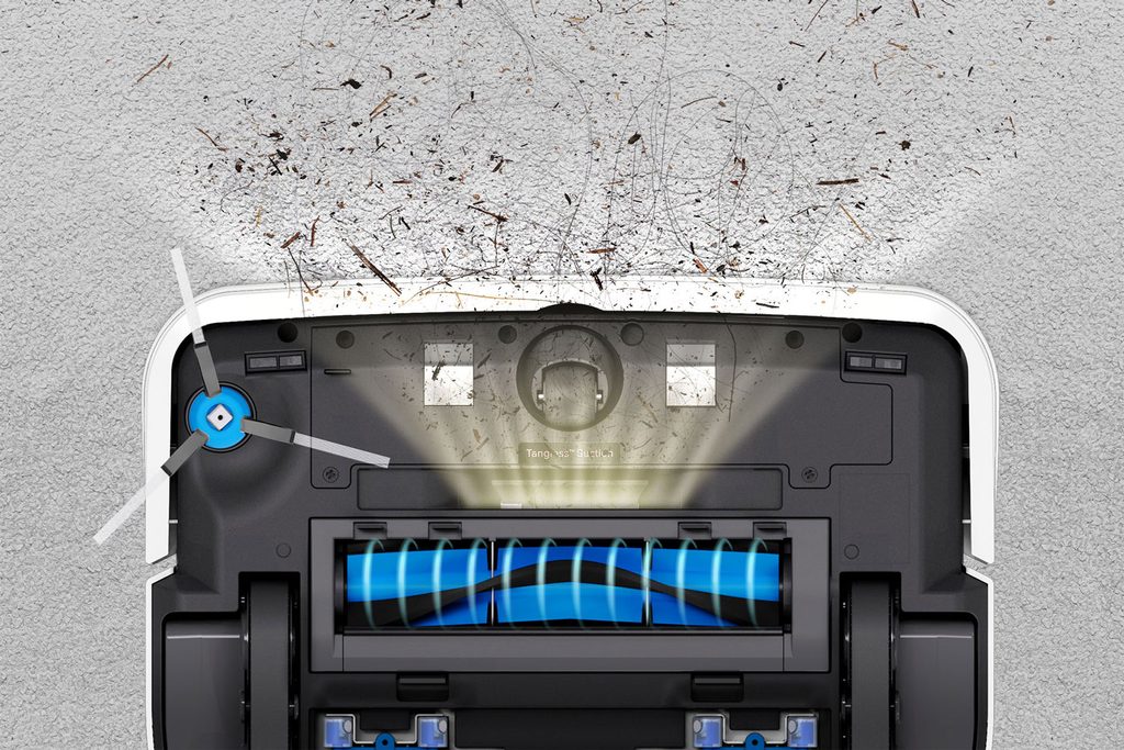 Úklid je prováděn systematicky a co nejefektivněji bez zbytečných zdržení. Navíc je vybaven systémem FDS (Fixed Distance Sensors) pro detekci malých překážek před nebo podél zdí a senzory proti pádu ze schodů, umístěnými v přední a zadní části robota.