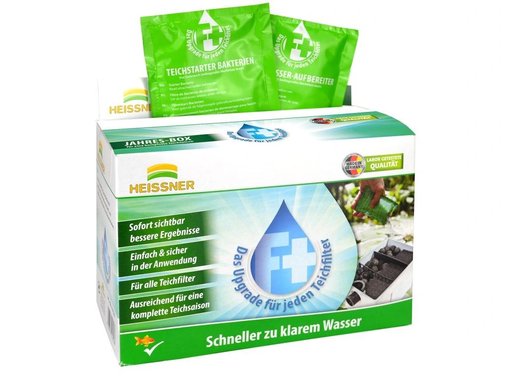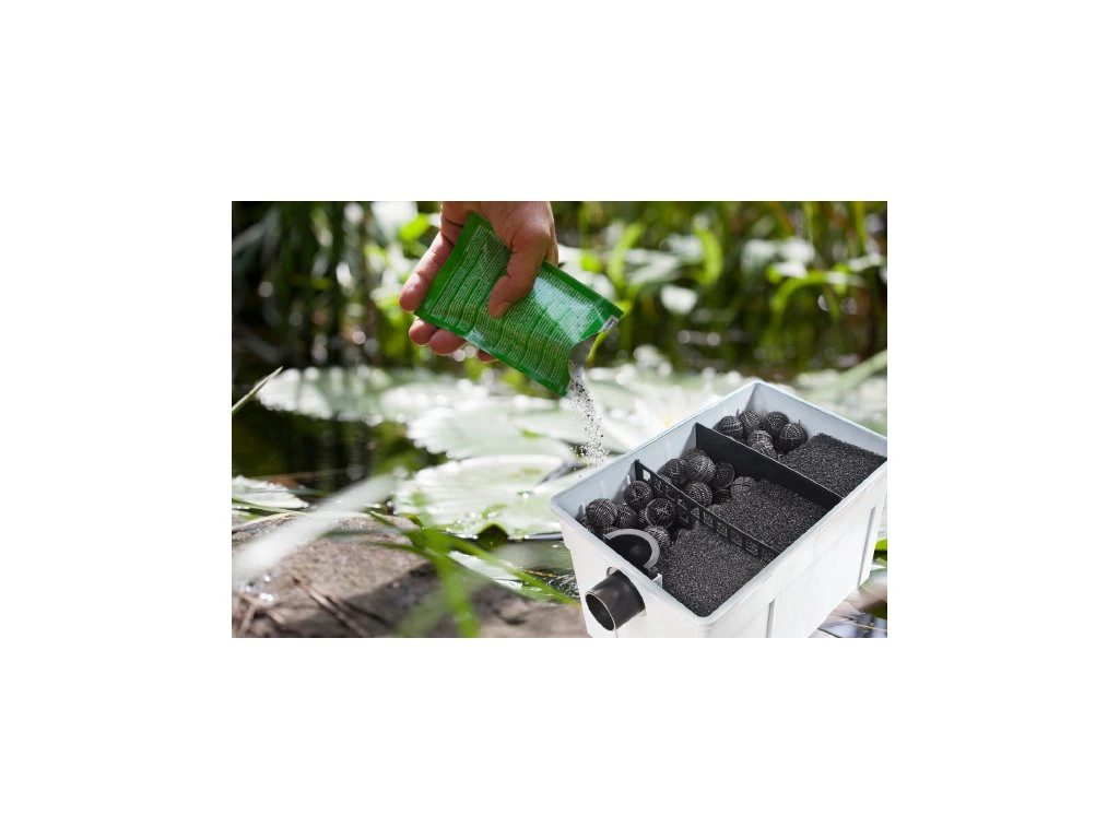 Jedno balení F+ s 10ti ks sáčky Vám vystačí na celou sezónu od jara do podzimu. Jednoduchá aplikace: každé 3 týdny nasypat obsah sáčku přímo do filtru. Obsahuje 7 x přípravek na úpravu vody, ten nastaví správné hodnoty ph a tvrdosti, což je důležité pokud je voda moc měkká nefungují pak filtrační bakterie. Obsahuje 3 x startovací filtrační bakterie, usídlí se ve filtraci a v jezírku odebírají živiny pro řasy. Díky srážkám a vnějším vlivům se mění hodnoty jezírkové vody a mohou mít vliv na kvalitu vody, ale díky sadě HEISSNER F-PLUS přejdete možným problémům.