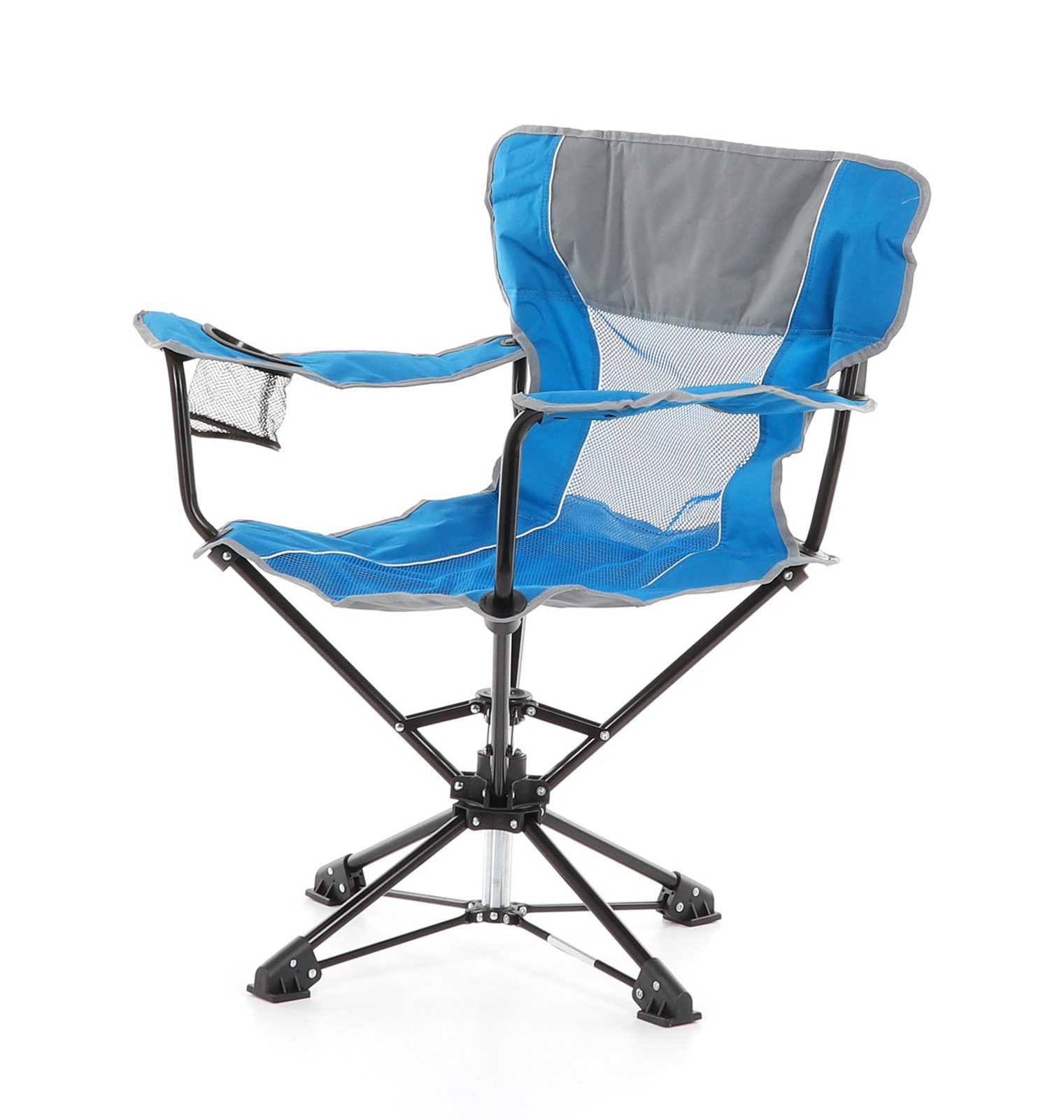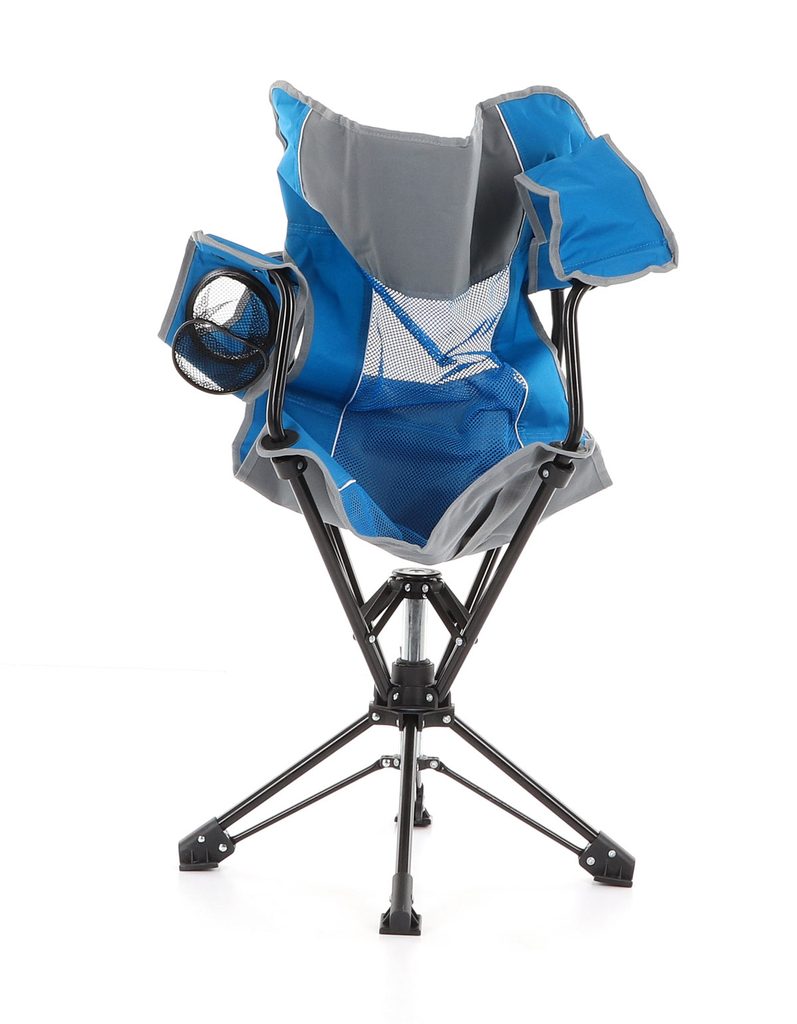 Skládací pohodlné křeslo kovové konstrukce otočné o 360 stupňů. Má konstrukci z ocelových trubek o průměru 19 mm upravené komaxitovou barvou.