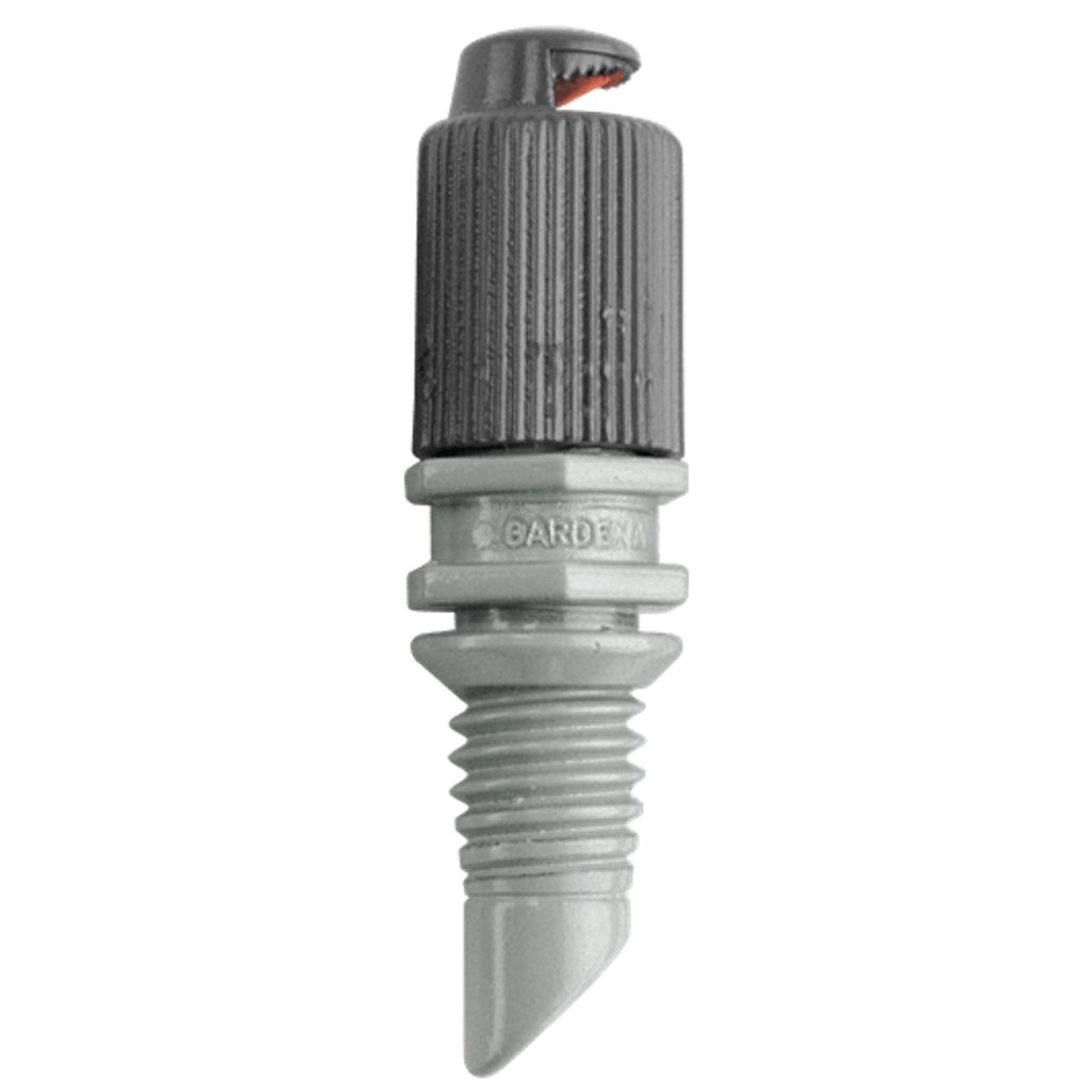 S rozprašovací tryskou 180° od společnosti GARDENA, jako součástí systému GARDENA Micro-Drip, je možné plošné zavlažování záhonů jemným postřikem. Dosah rozprašovací trysky je přibližně 3 m. Je možné prodloužení pomocí prodlužovací trubky (kat. č. 1377-20).