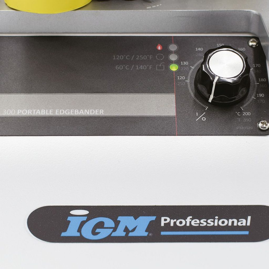 Inovovaná olepovačka IGM BR300 na tavné lepidlo je určena pro rychlé olepování 0,4-3 mm ABS, PVC, lamino hran nebo dýhy na rovné i tvarové dílce o síle 10–65 mm. Granulované lepidlo se v tavné komoře díky rychloohřevu během krátké doby roztaví a nanáší se přímo na pásku, která je následně pogumovanými válečky pevně přitlačena k dílci. Páska tak dokonale přilne k hraně po celé své ploše a výsledkem je pevný, čistý spoj v celé šířce pásky.
